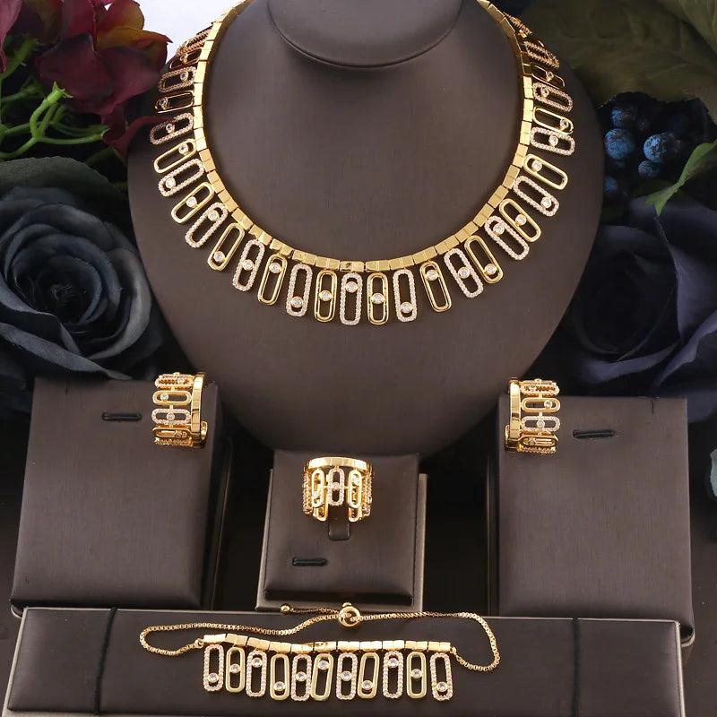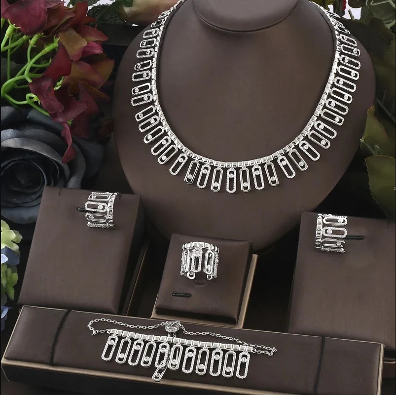 AccKing 4pcs Bridal Zirconia Full Jewelry Sets For Women Party, Luxury Dubai Nigeria CZ Crystal Wedding necklace sets