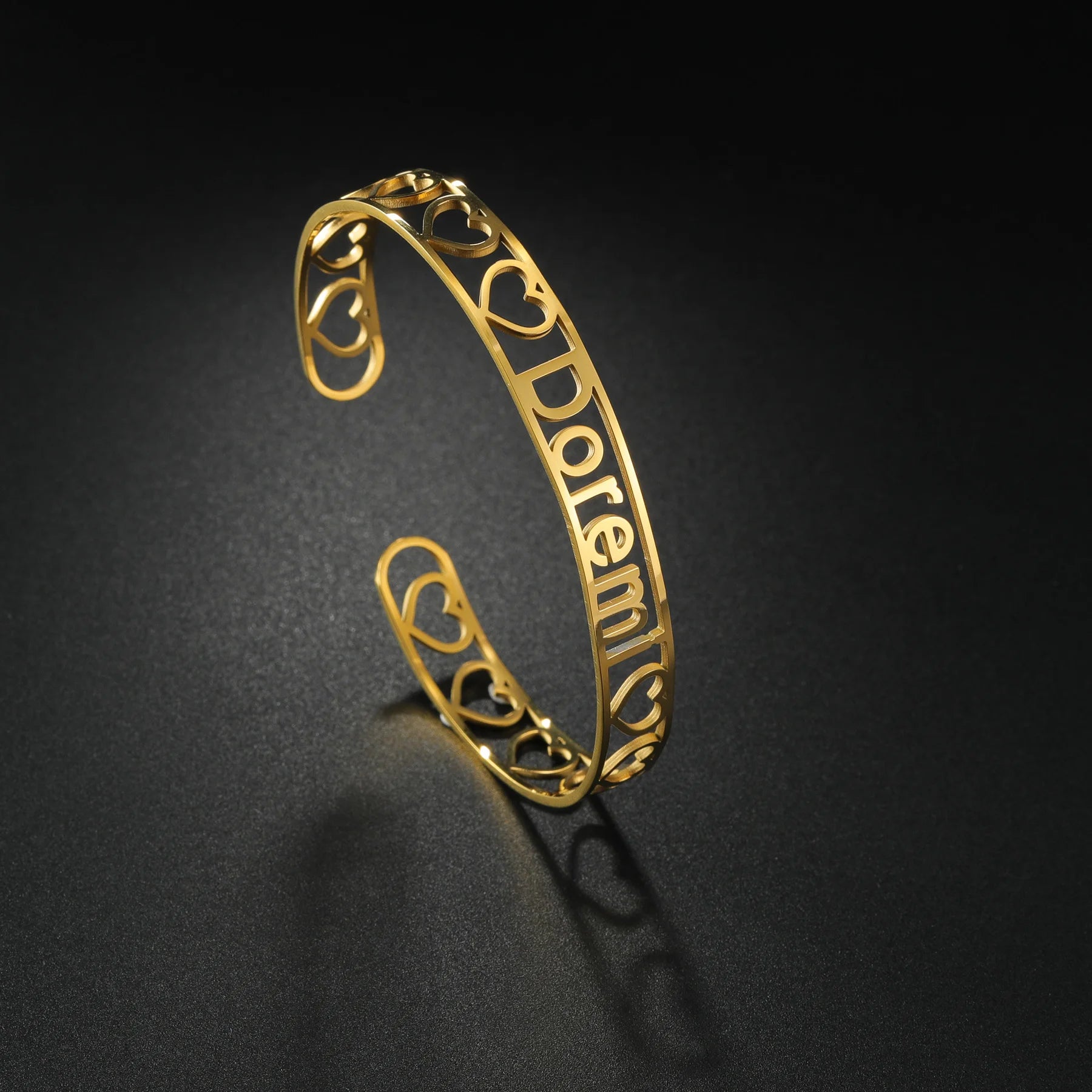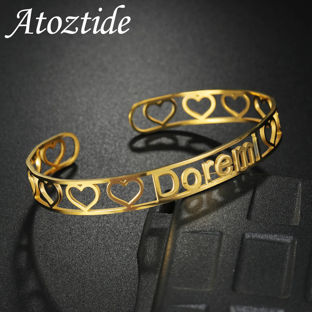 Atoztide 10mm Personalized Custom Name Bracelet for Women Men Stainless Steel Hollow Heart Fairy Bangles ...