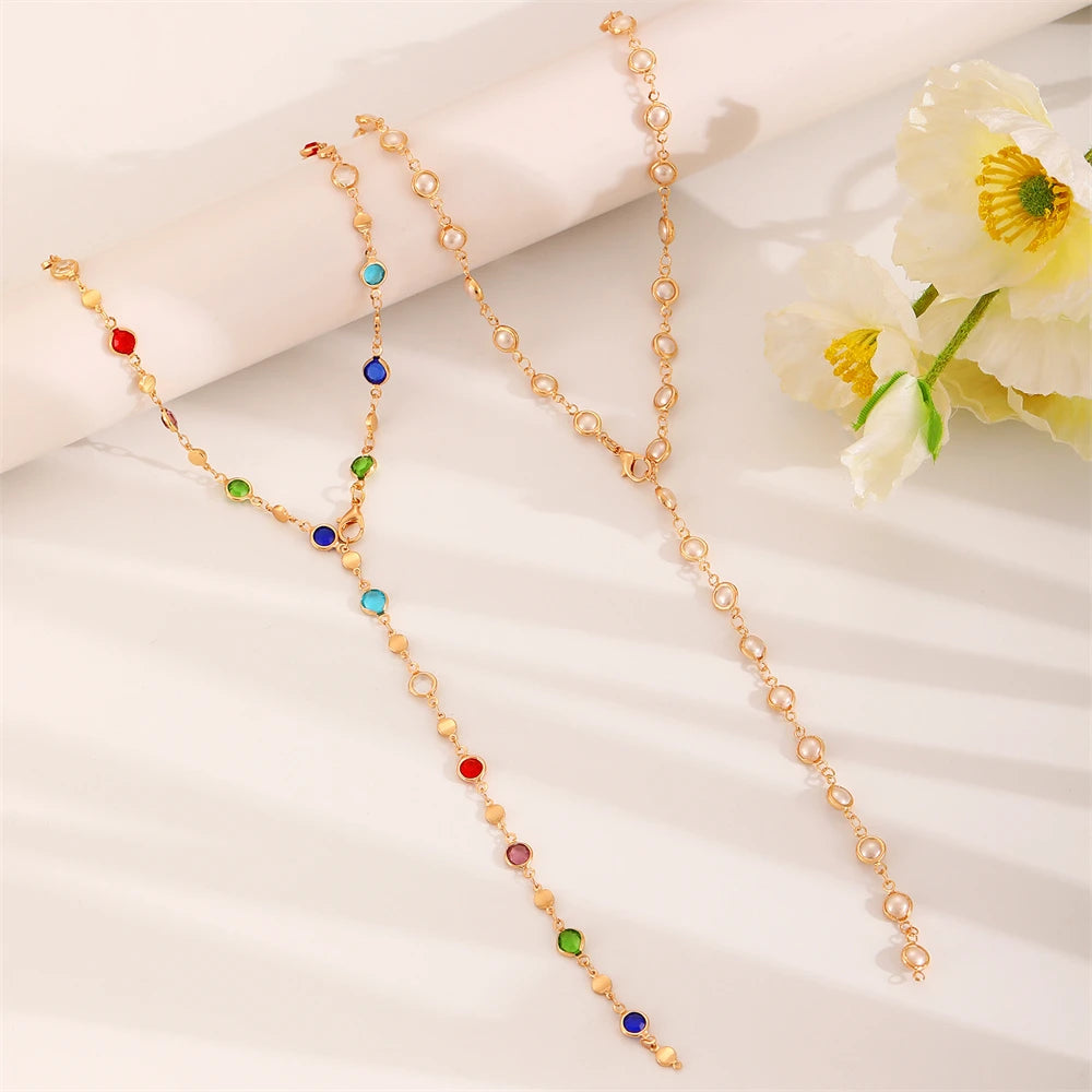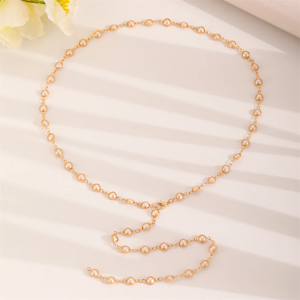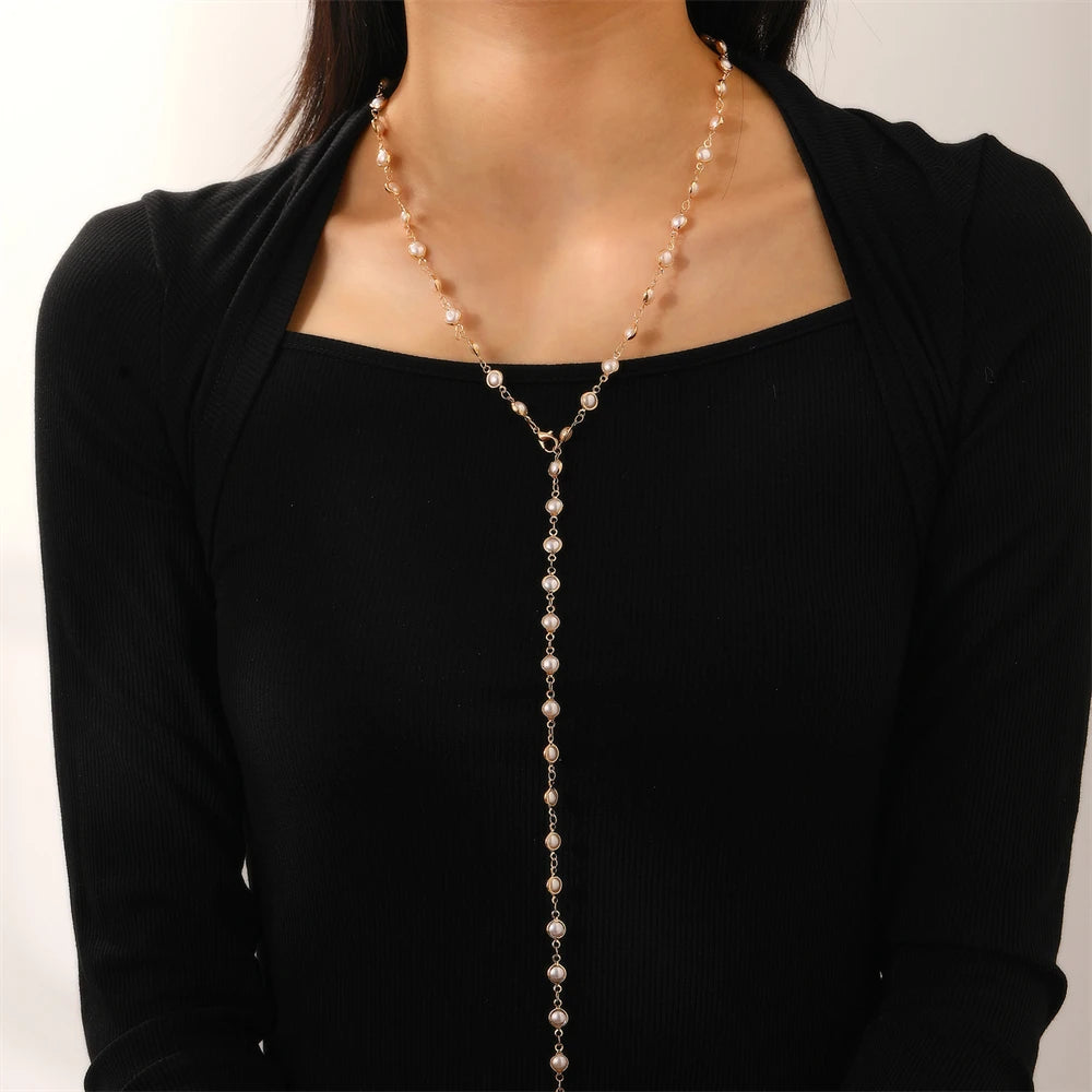Boho Round Pearl Long Y-Shaped Necklaces Metal Collarbone Chain Gold Silver Color Summer Holiday Party Body Jewelry Women Gifts
