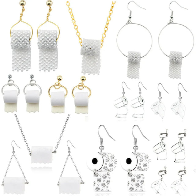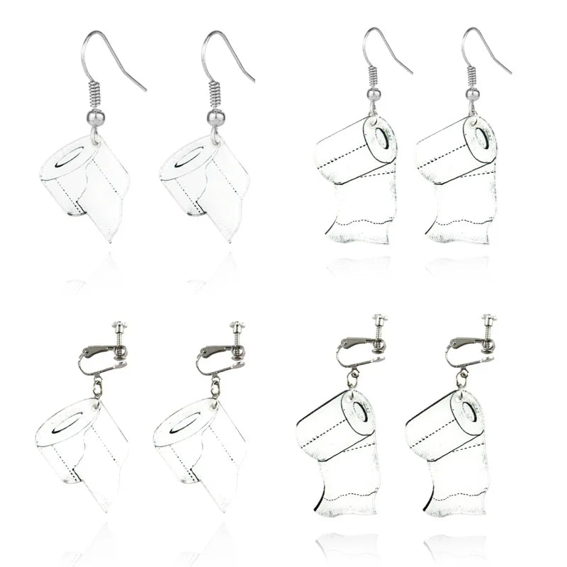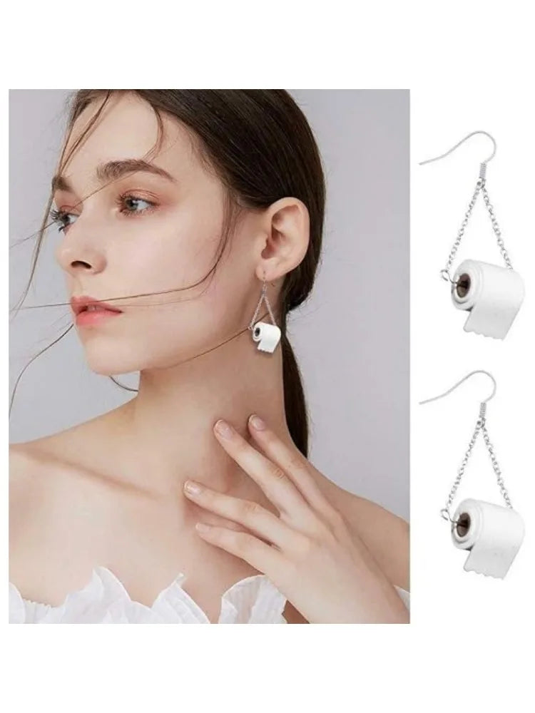 Creative earrings For Women 3D Roll Paper Dangle Earring Toilet Paper Personality Funny Party Xmas Gifts ...