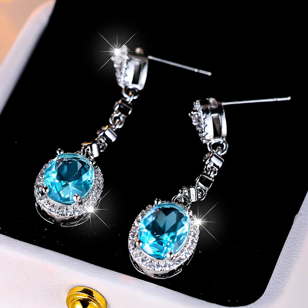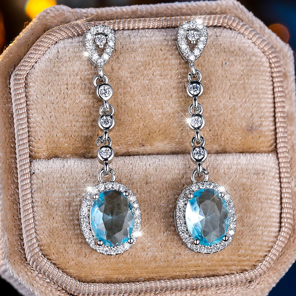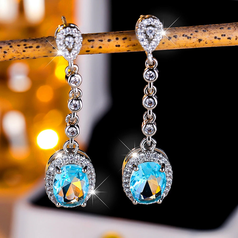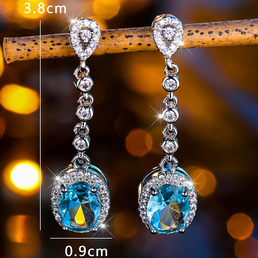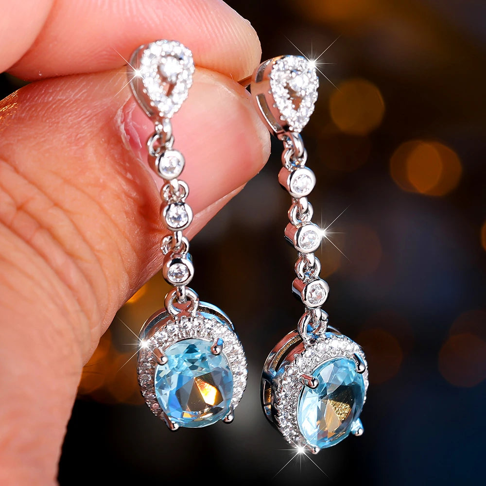Elegant Female Light Blue Zircon Stone Drop Silver Color Earrings Cute Dangle Boho Long Wedding Jewelry F...