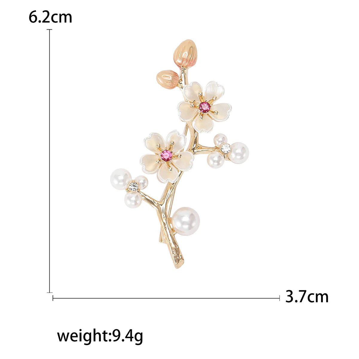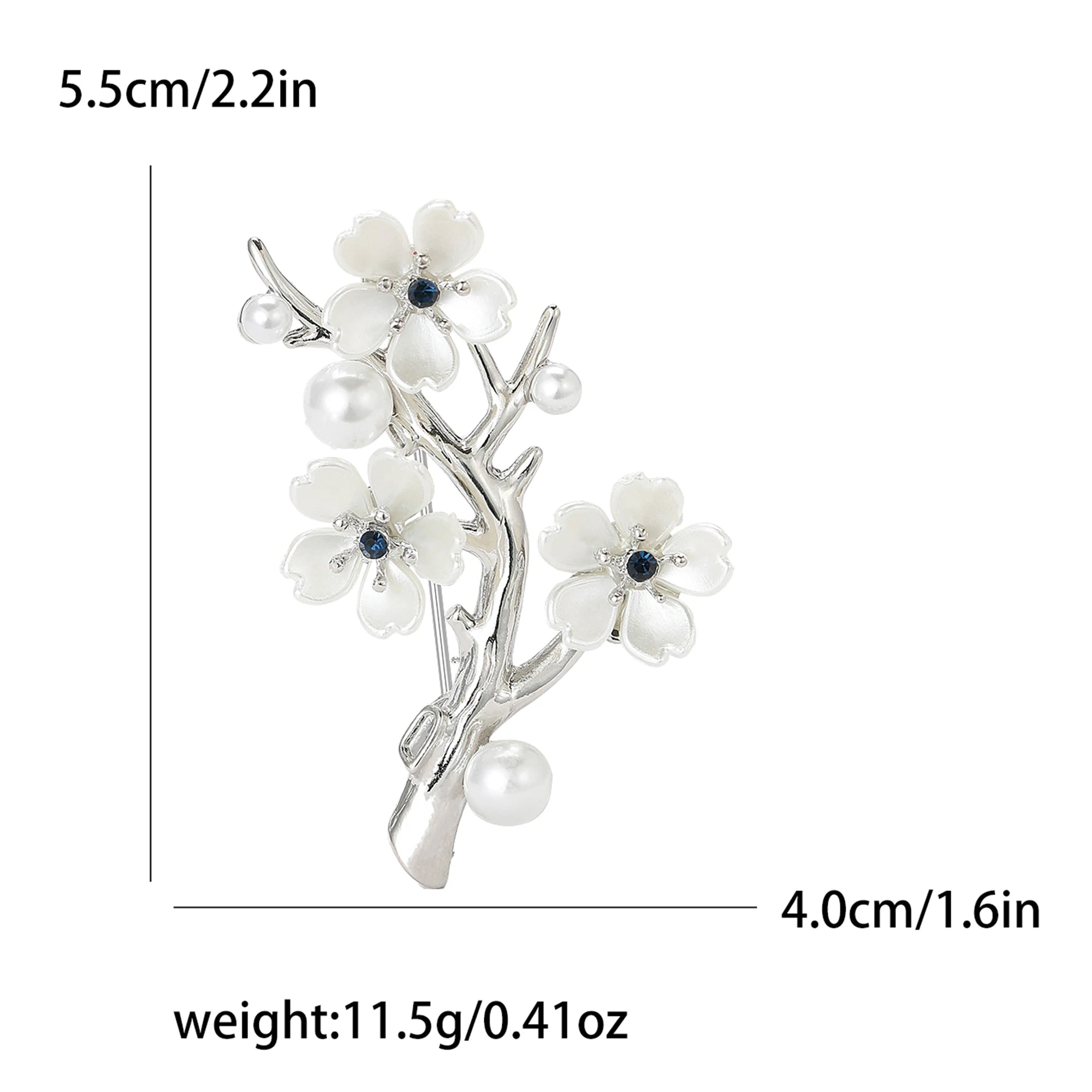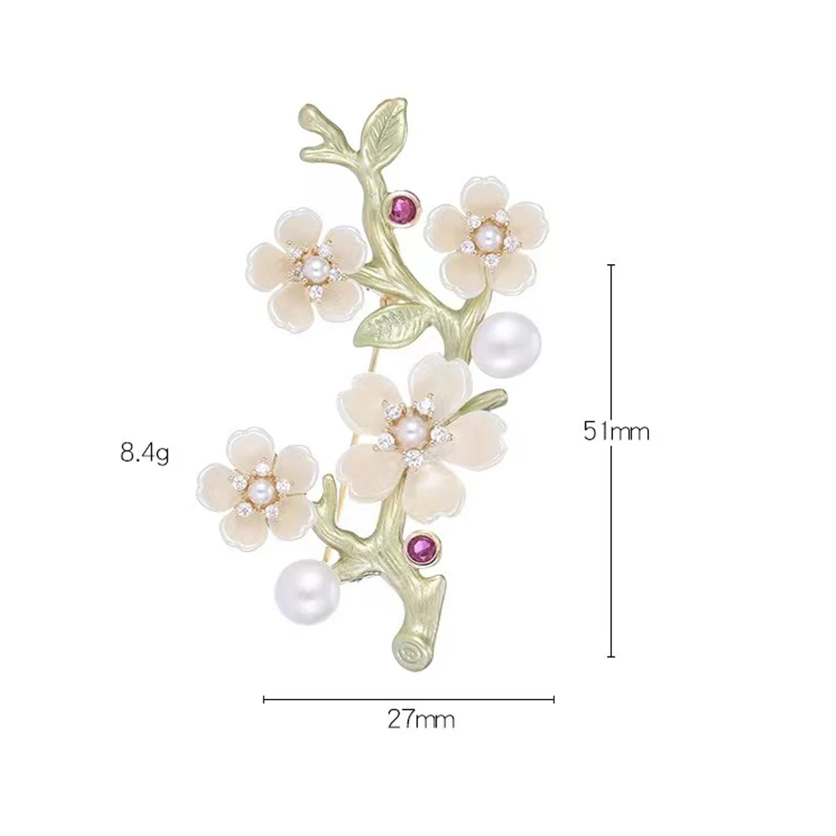 Enamel Plum Blossom Pin for Women Unisex Pearl Branch Brooch Office Party Friend Gifts Jewelry Accessories
