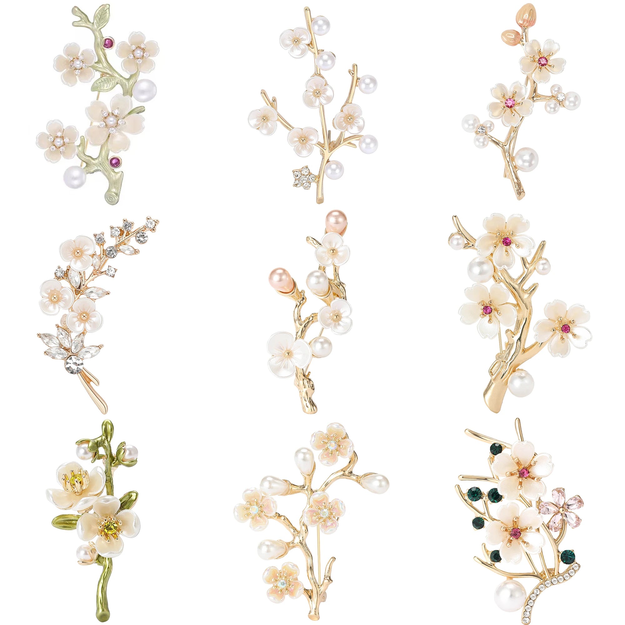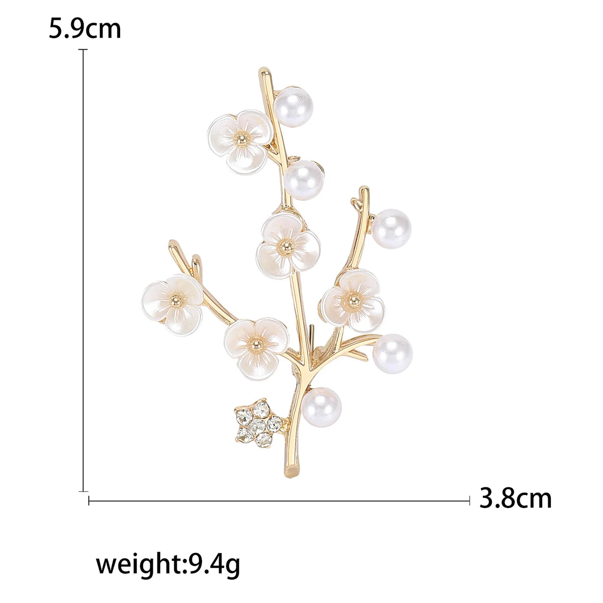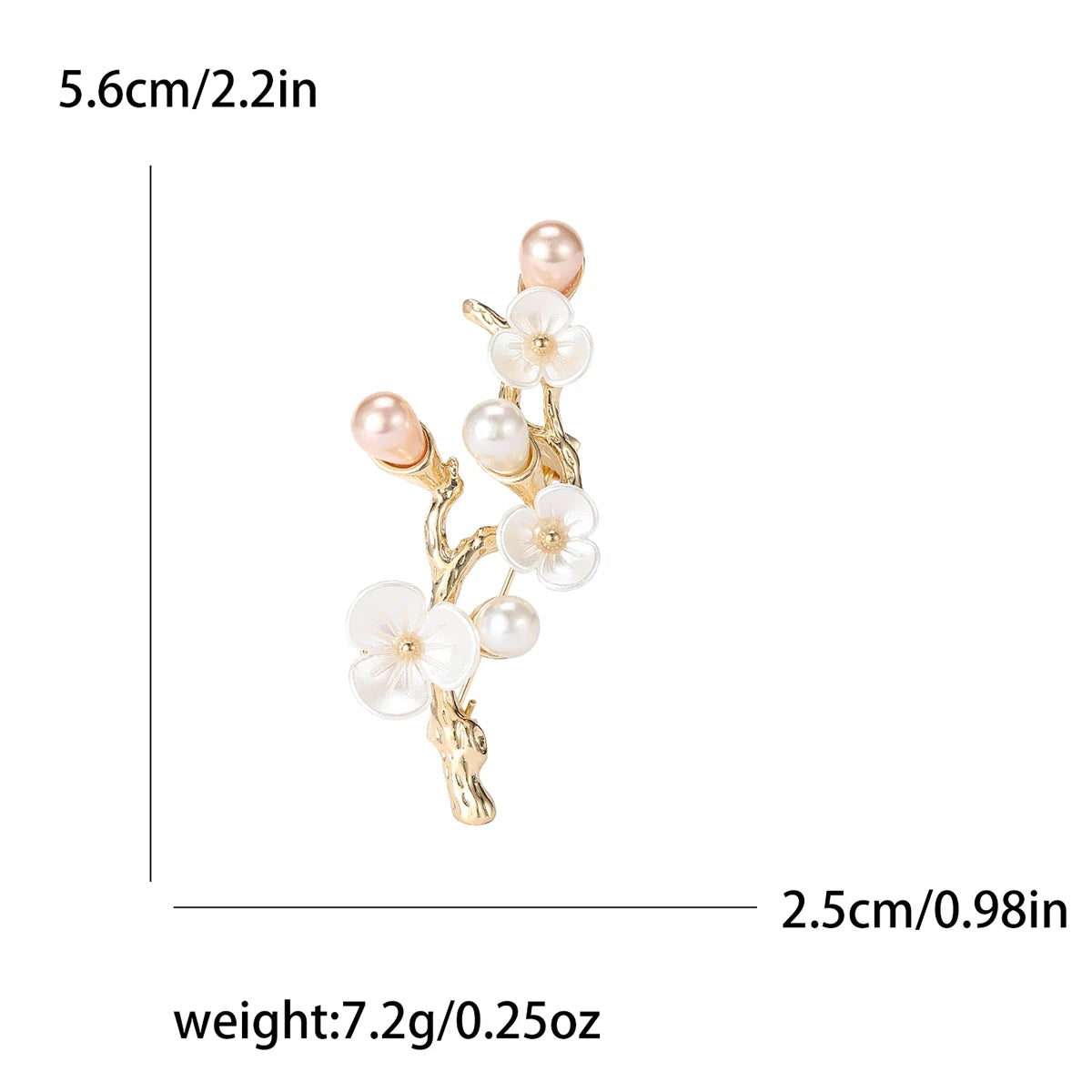 Enamel Plum Blossom Pin for Women Unisex Pearl Branch Brooch Office Party Friend Gifts Jewelry Accessories