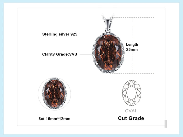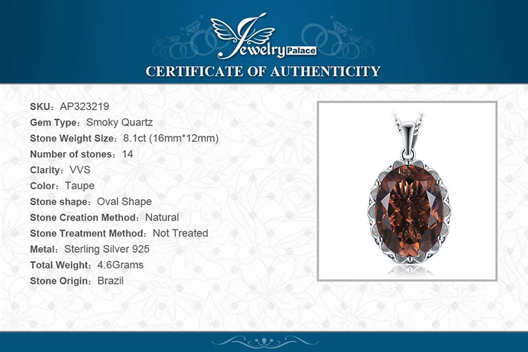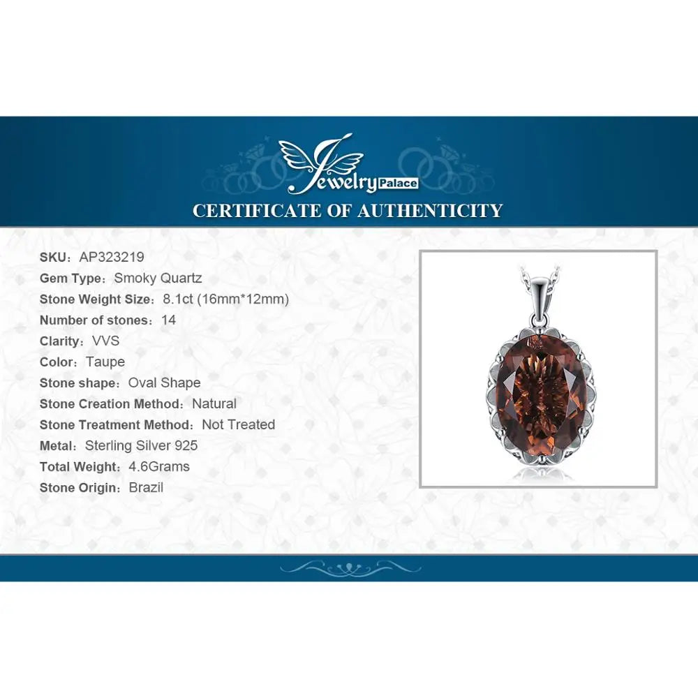 JewelryPalace Huge 8ct Natural Smoky Quartz 925 Sterling Silver Pendant Necklace for Women No Chain