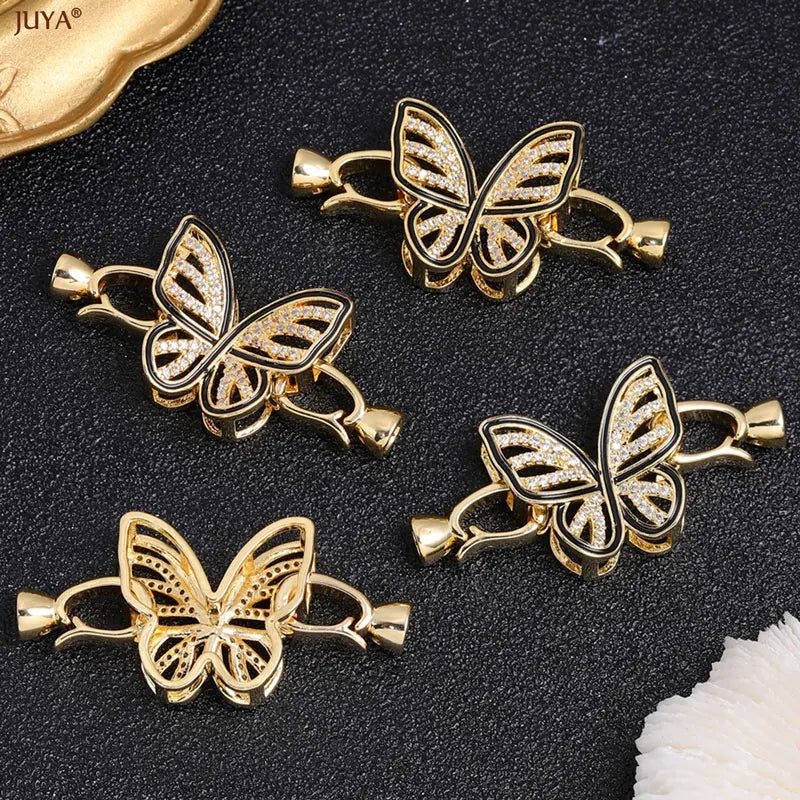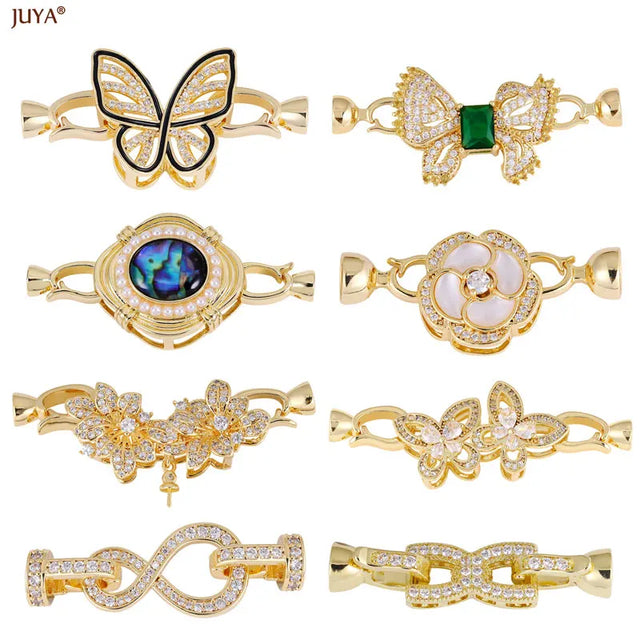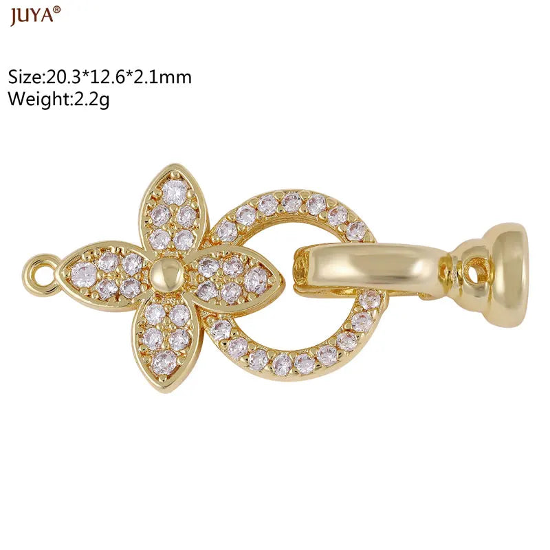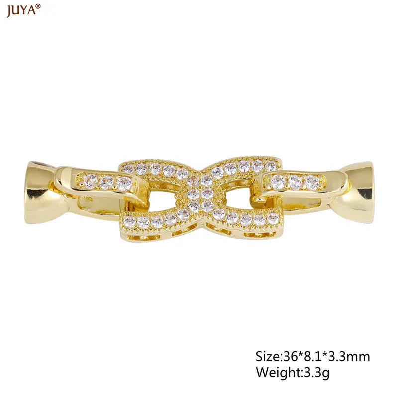 JUYA High Quality Paved Zirconia Clasps Connectors Luxury 18K Gold Plated Clasps Fasteners For DIY Needlework Ending Beaded Jewelry Making Bracelets Necklaces Accessories
