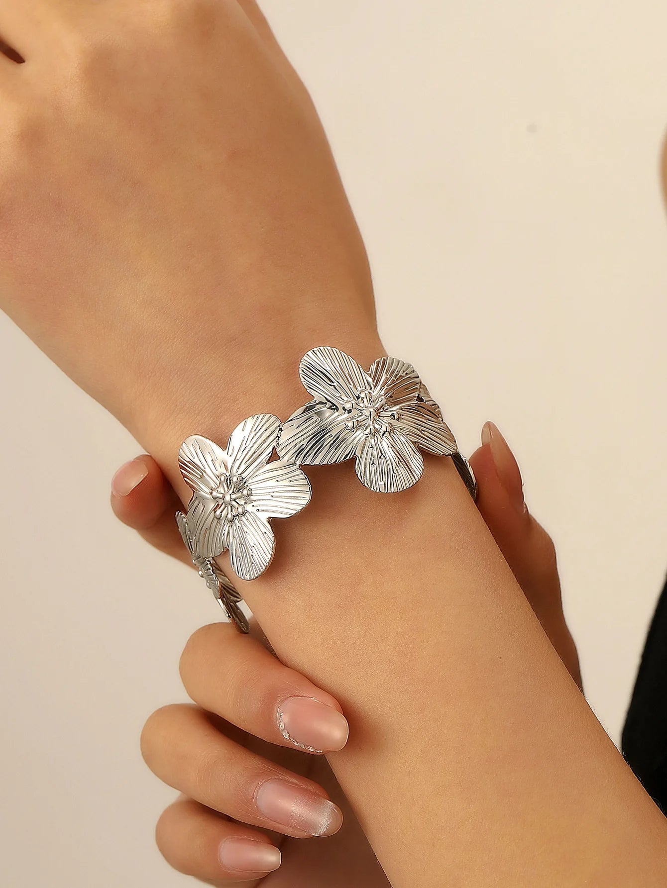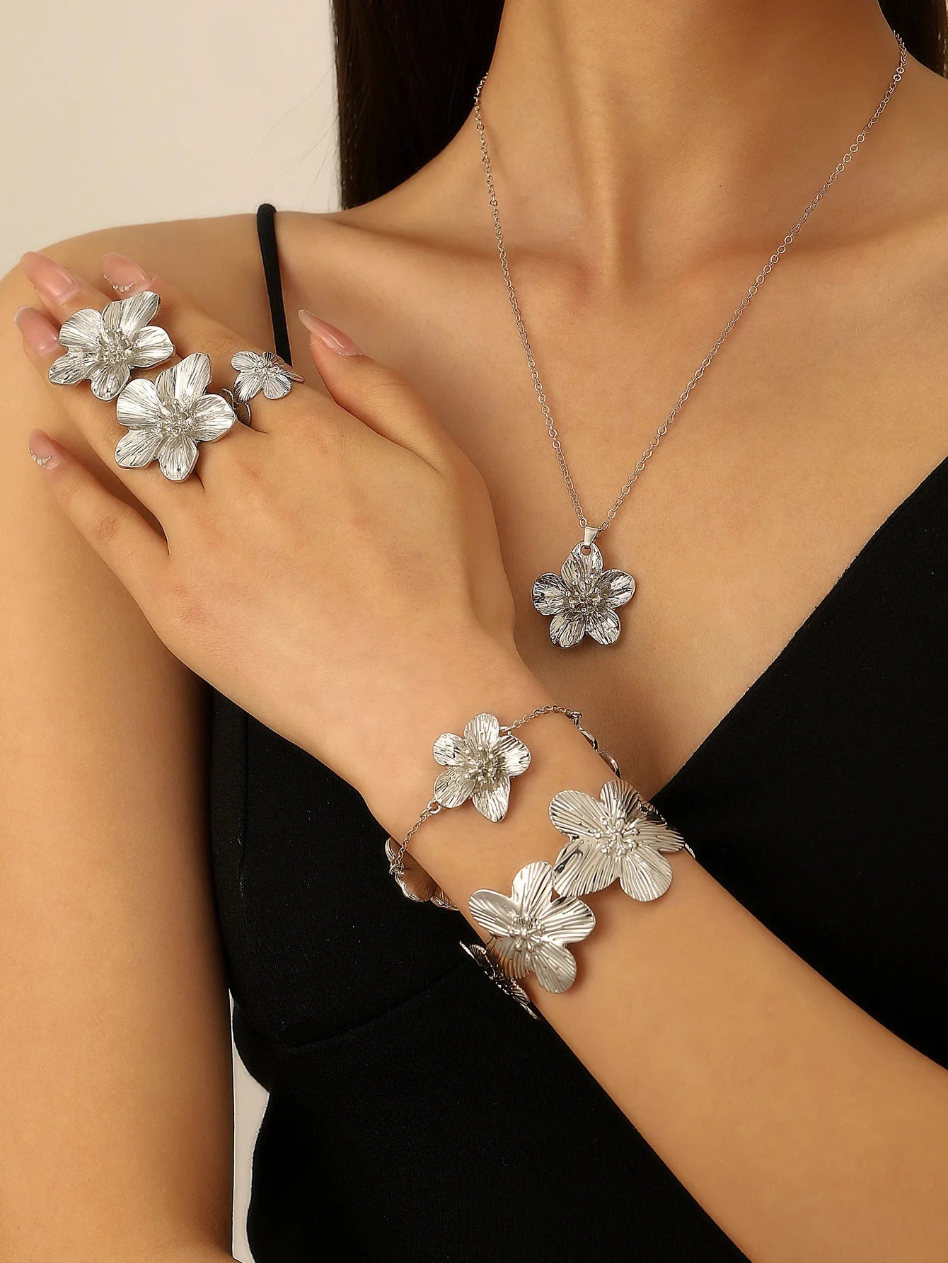 LATS Crinkled Textured Flowers Necklace Earrings Bracelet Anklet Ring Bracelet New Design Jewelry Set Fas...