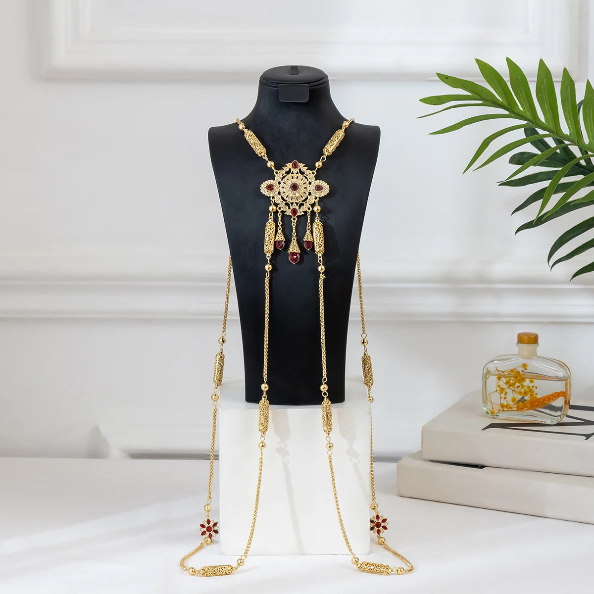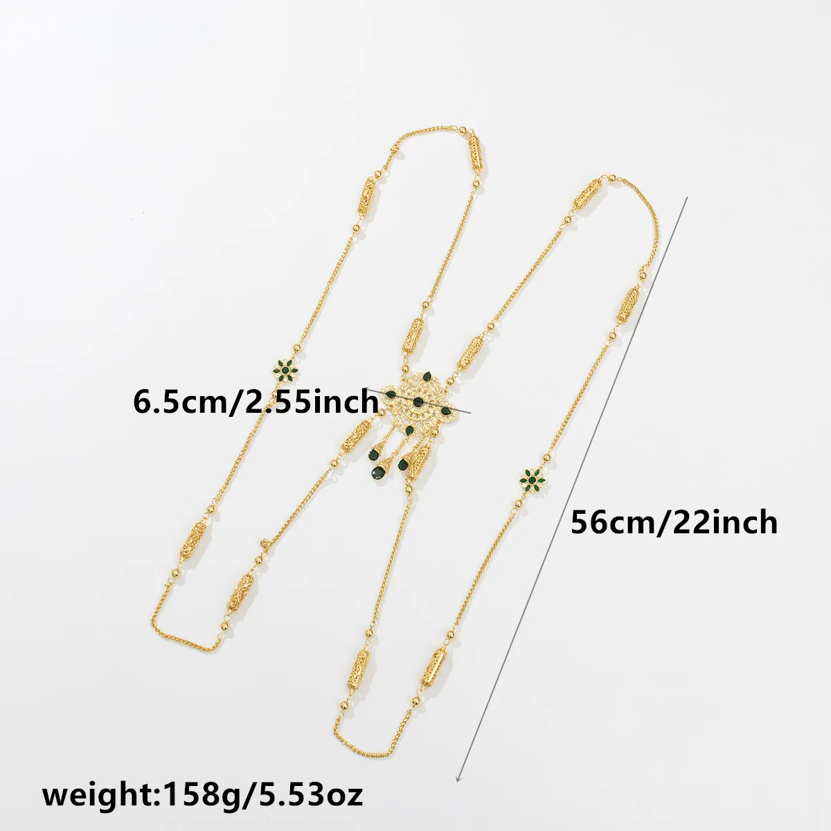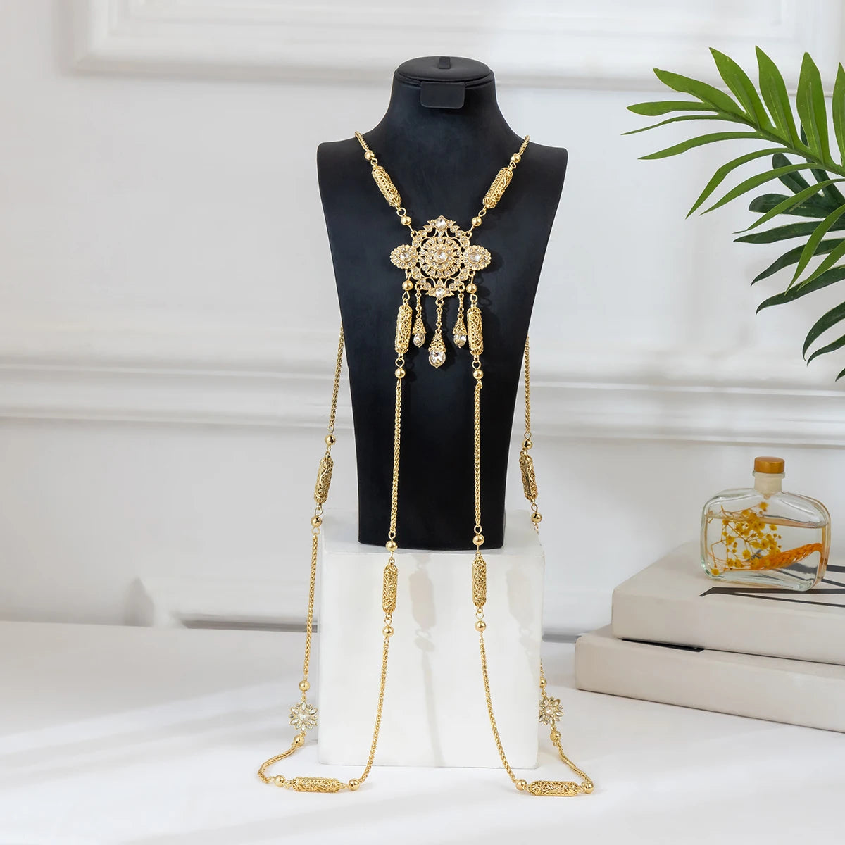 Luxury Bridal Shoulder Chain Jewelry Handmade Metal Gold Plated Rhinestone Body Chain Traditional Morocca...