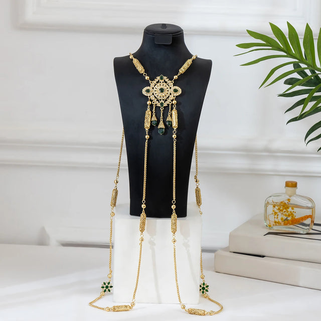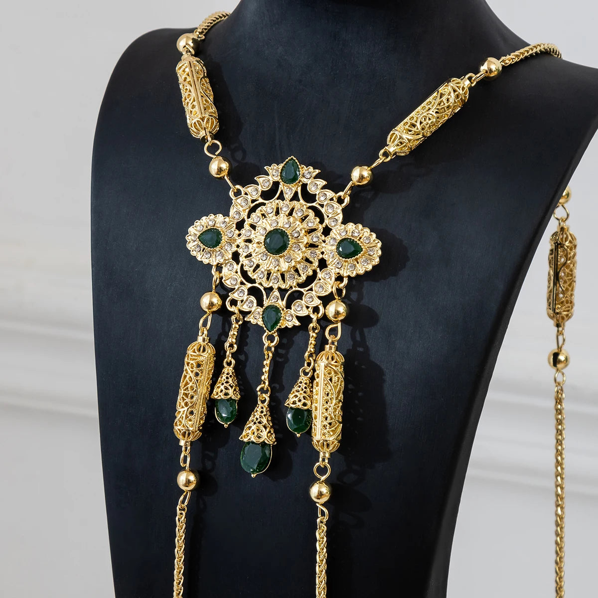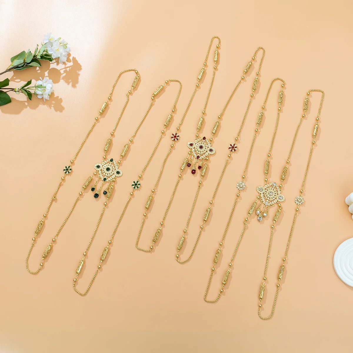Luxury Bridal Shoulder Chain Jewelry Handmade Metal Gold Plated Rhinestone Body Chain Traditional Morocca...