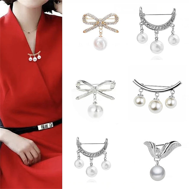 Multifunction Pearl Geometric Rhinestone Brooch Buckle Pin Wasit Tighting Pins Bowknot Cardigan Clip Jewe...