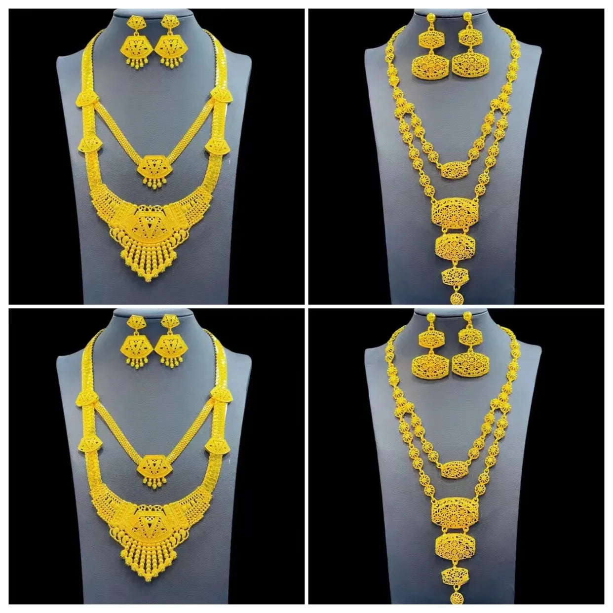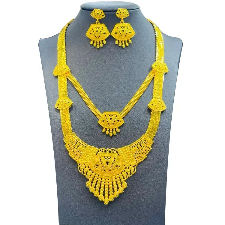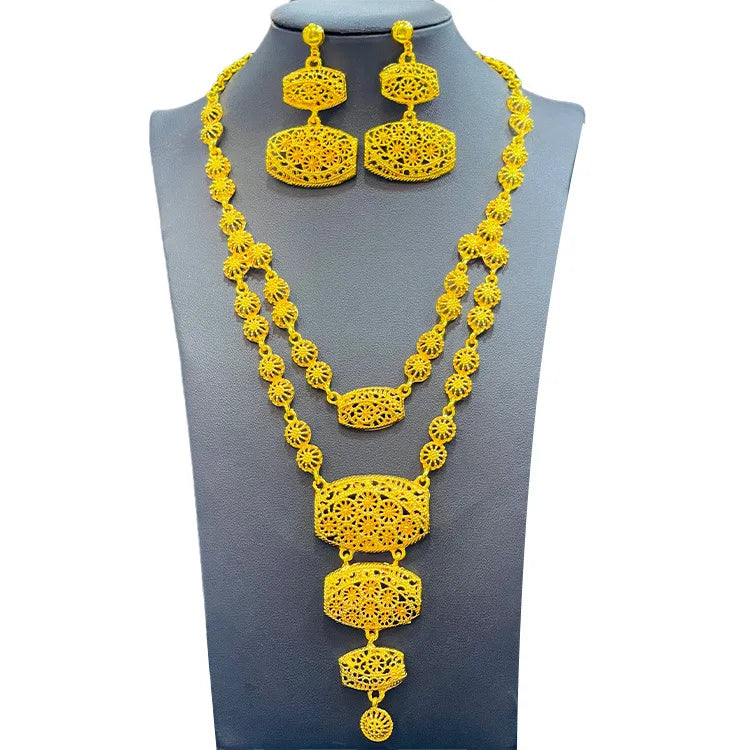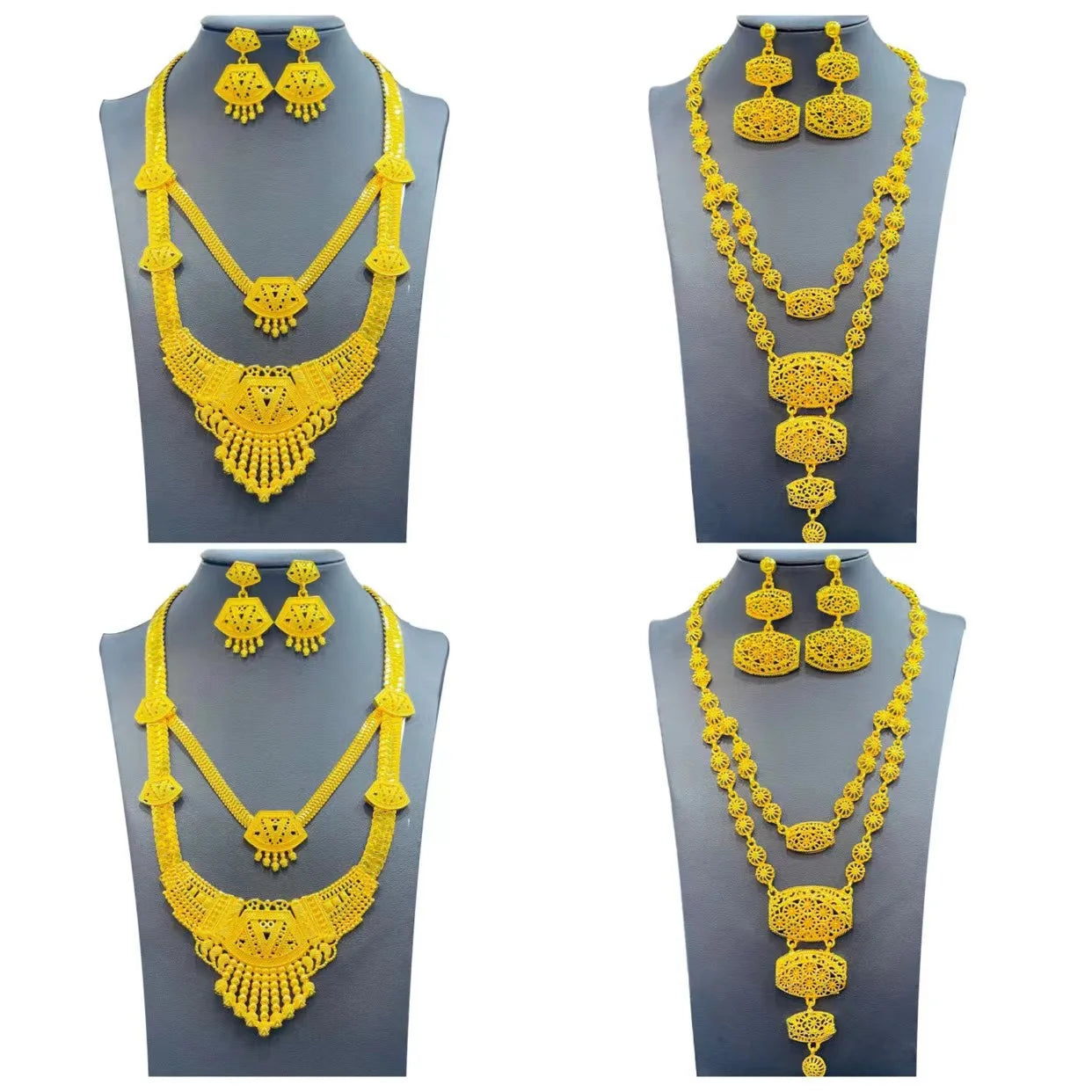 New 24K Alloy Dubai Jewelry Set For Women Necklace Earrings Indian Thailand Bride Wedding Two Piece Set W...