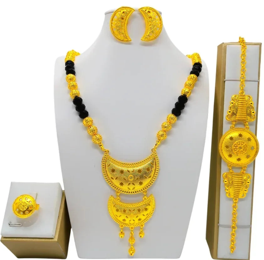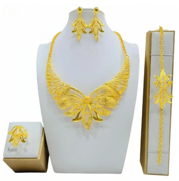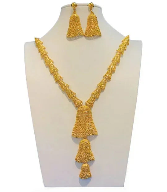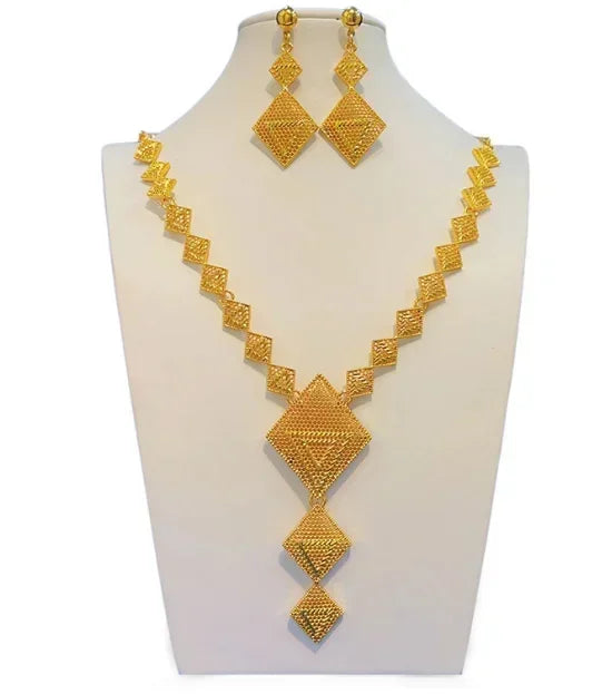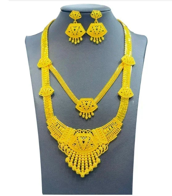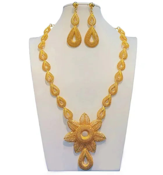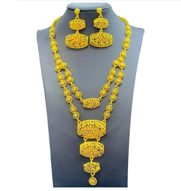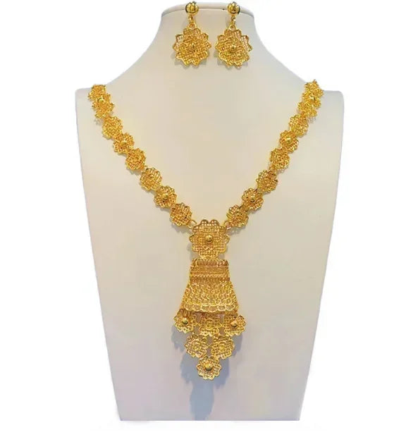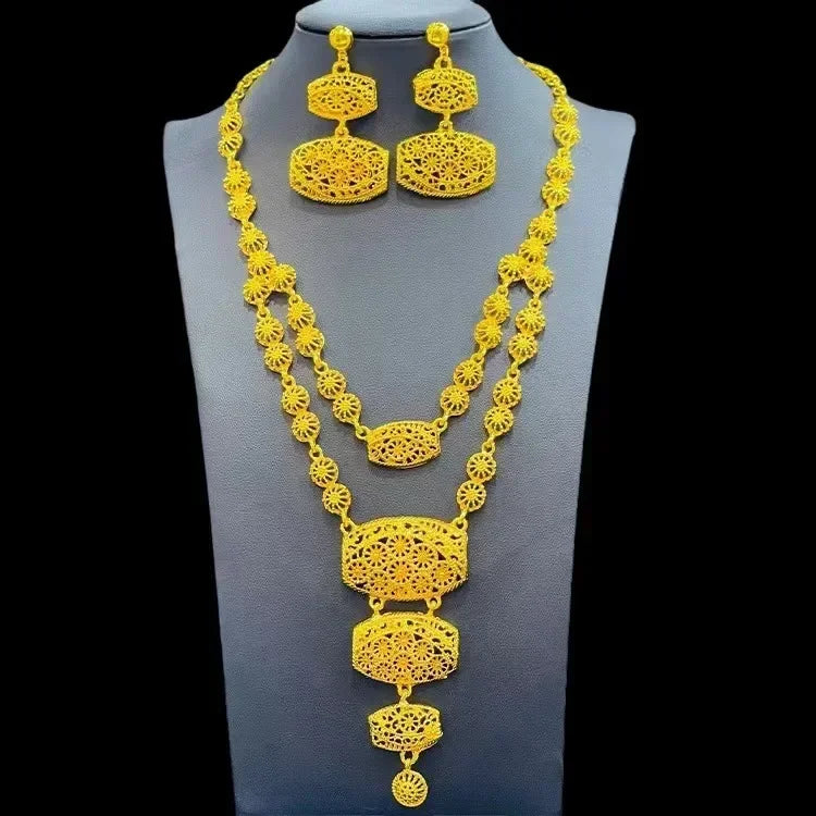 New 24K Alloy Dubai Jewelry Set For Women Necklace Earrings Indian Thailand Bride Wedding Two Piece Set W...