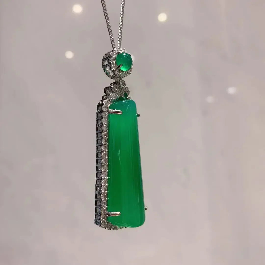 925 Sterling Silver Pendant Necklace Emerald Ping An Temperament Female Jewel...