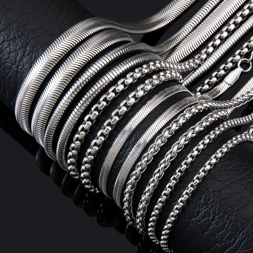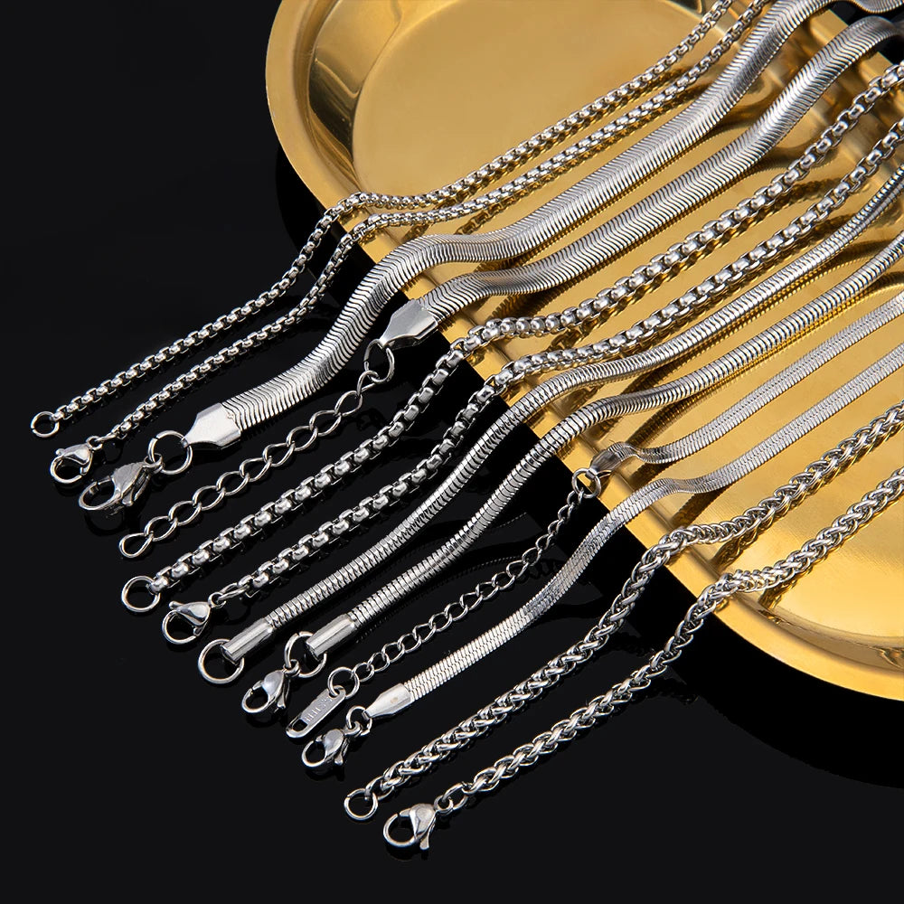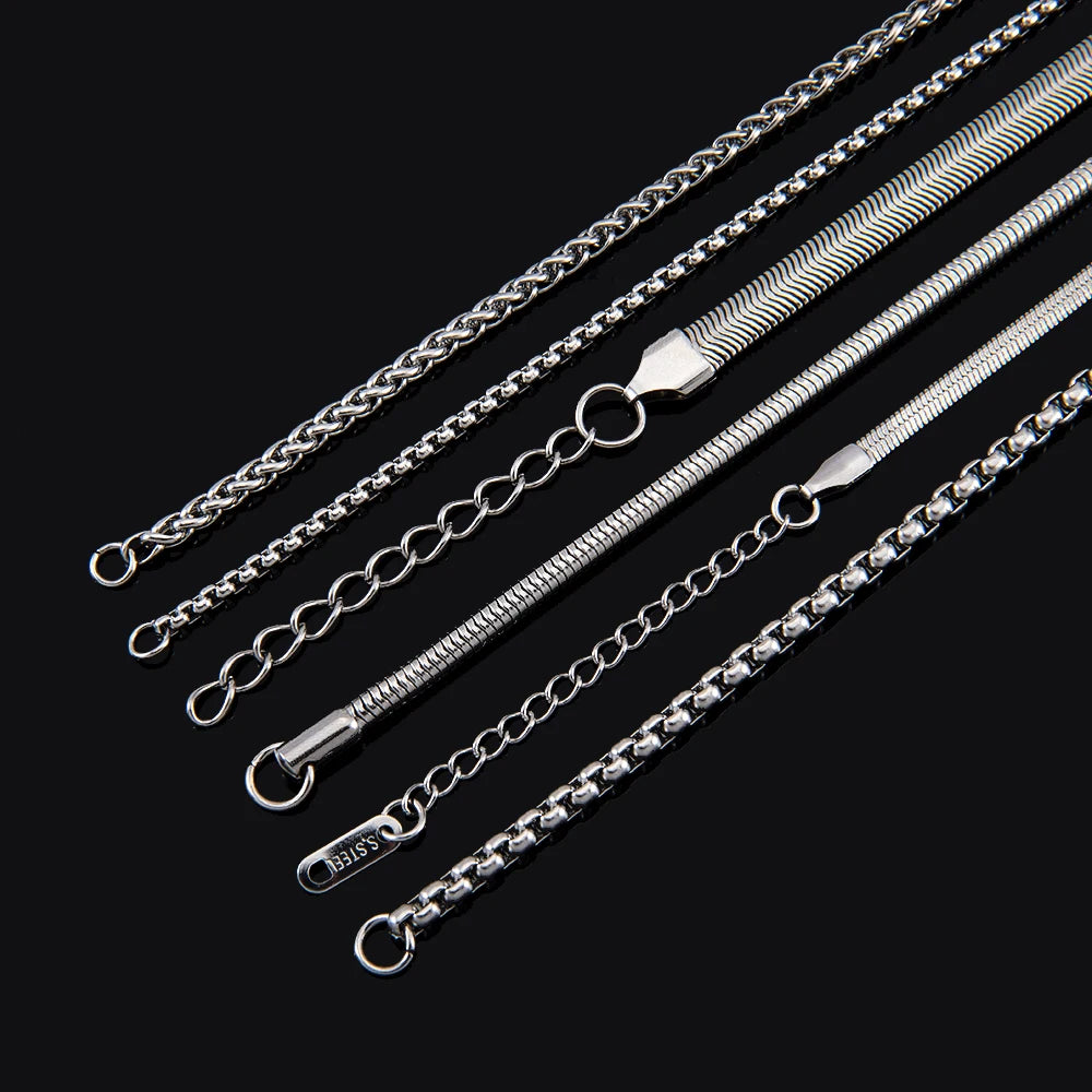 No Fade 5pcs Stainless Steel Twist Chain Necklace Box Snake Chain with Clasp Open Ring DIY Men Jewelry Ma...