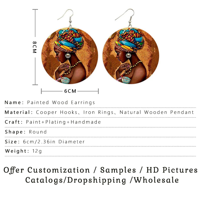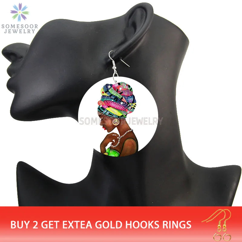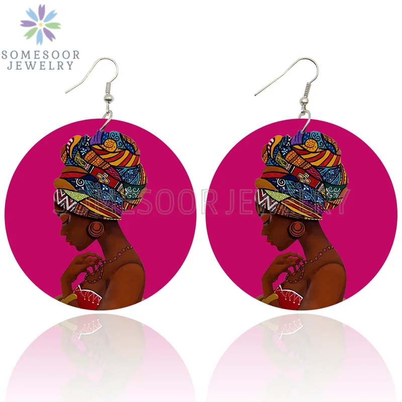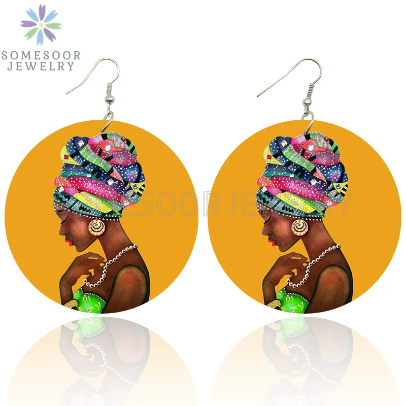 SOMESOOR Vinatge African Headwrap Woman Wood Drop Earrings Afrocentric Ethnic Boths Side Painting Jewelry...