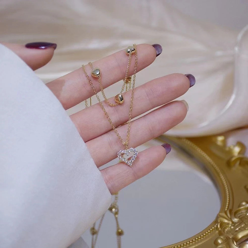 SUMENG 2024 New Gold Color Double Layer Heart Necklace Zircon For Women Clavicle Chain Elegant Charm Wedd...