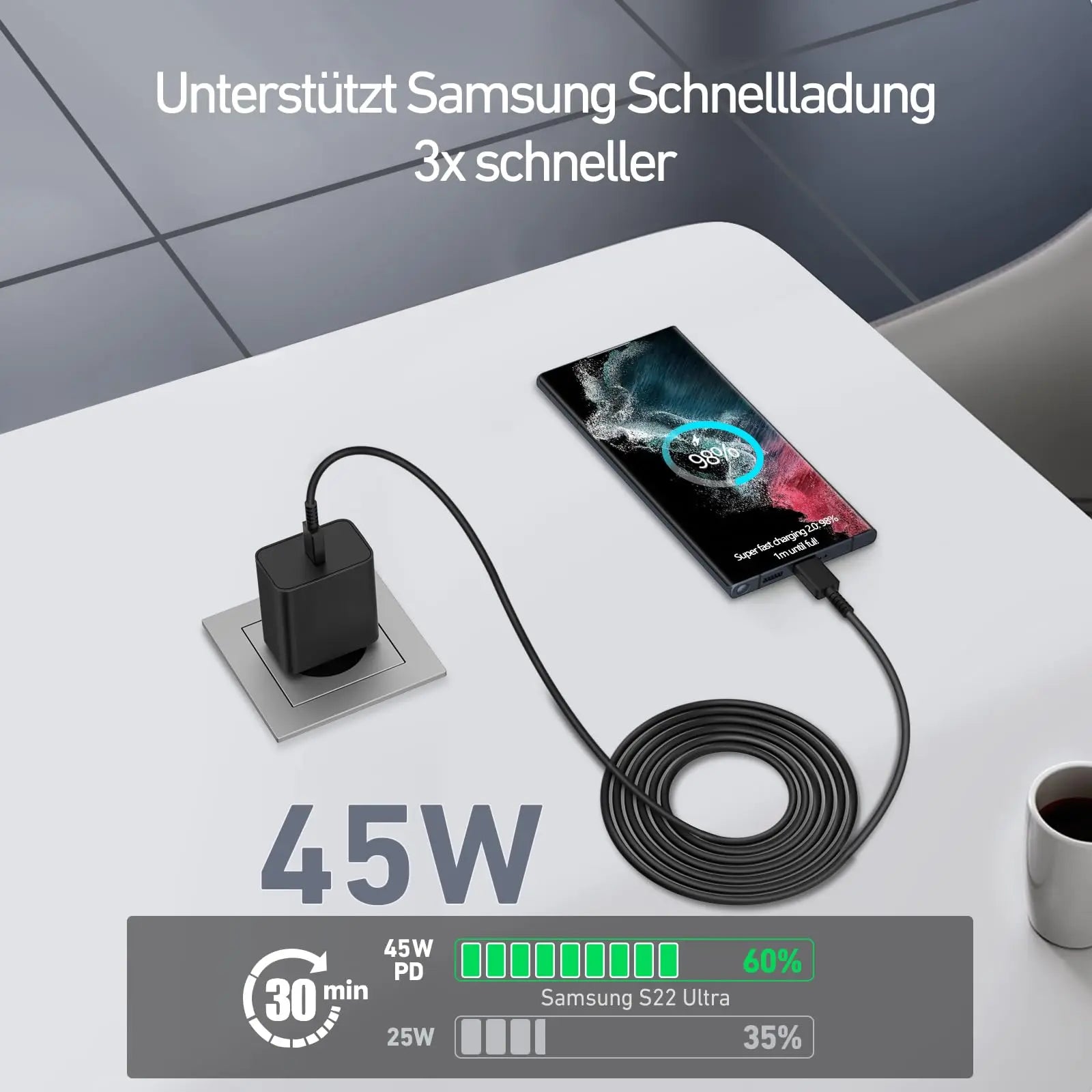 45W USB C Charger Fast Charging Cable Compatible with Samsung Galaxy S25 S24 ...