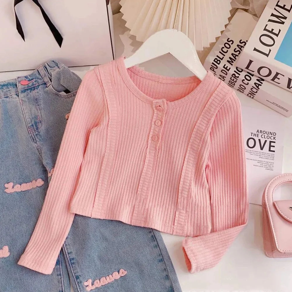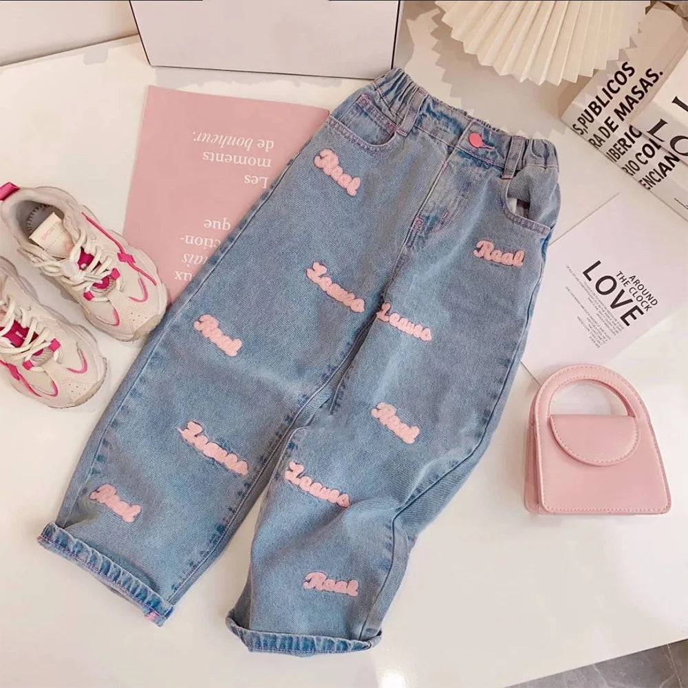 Spring Autumn Girls Clothing Set Solid Color Long Sleeve Top+Letter Print Wide