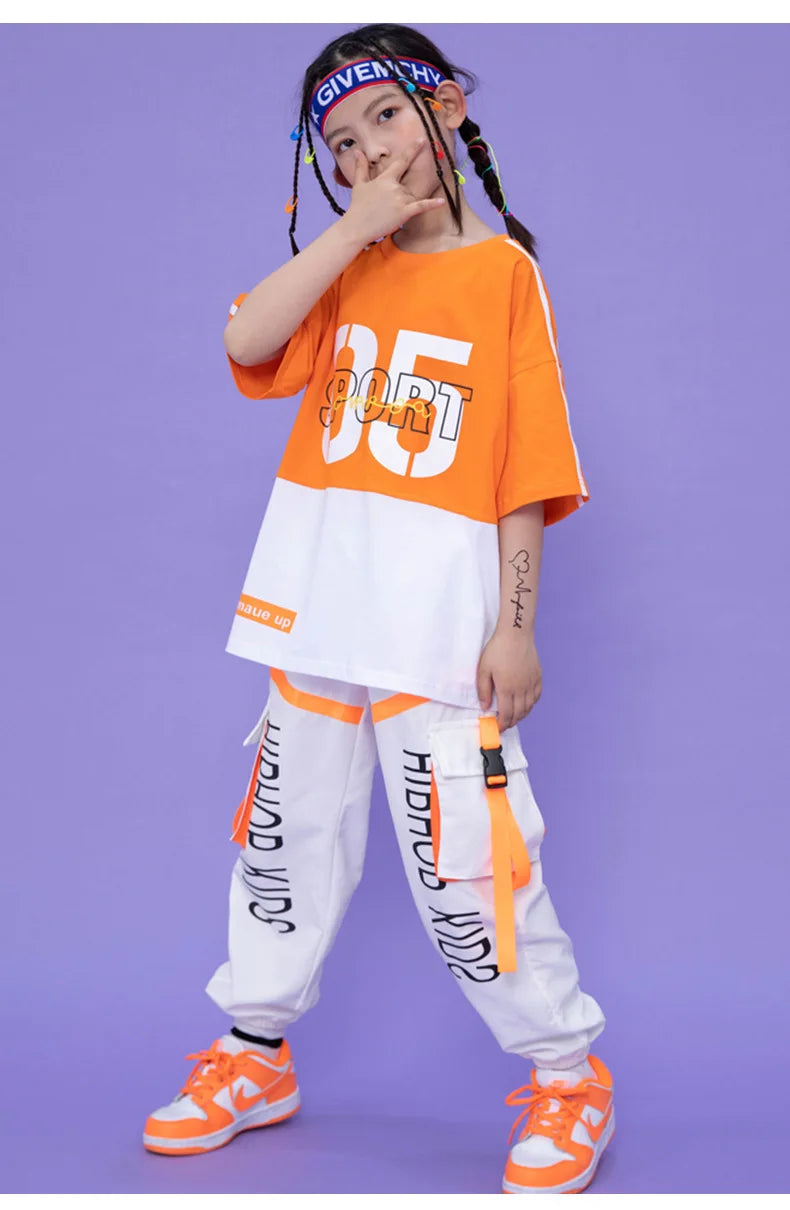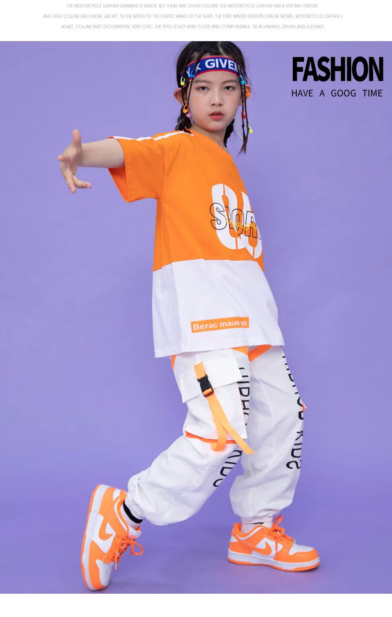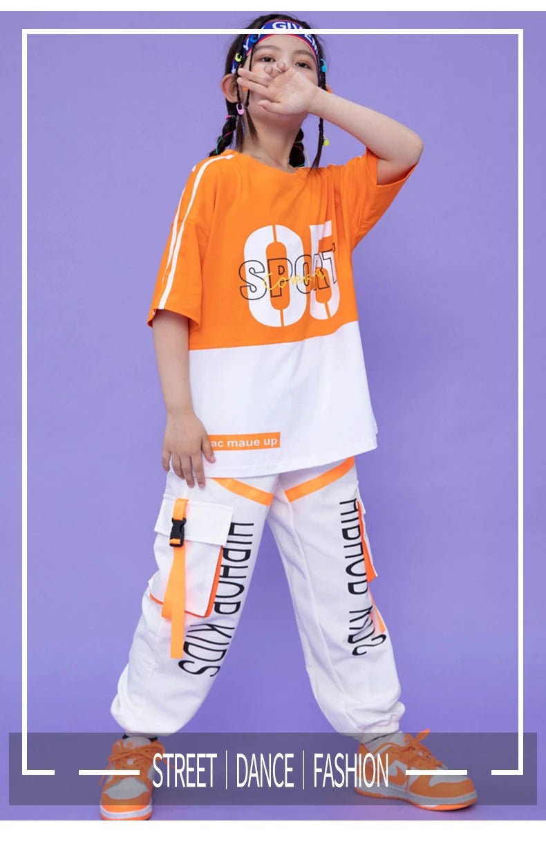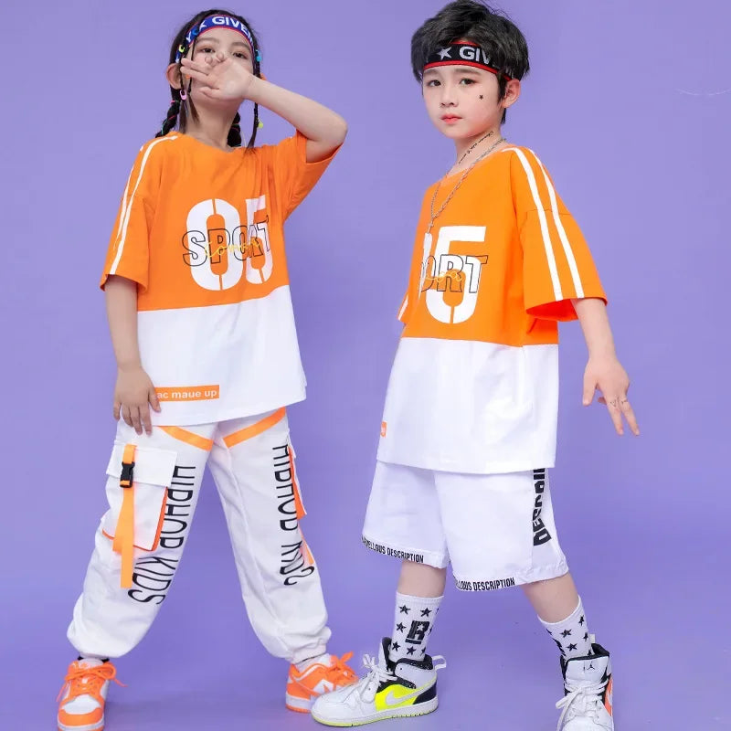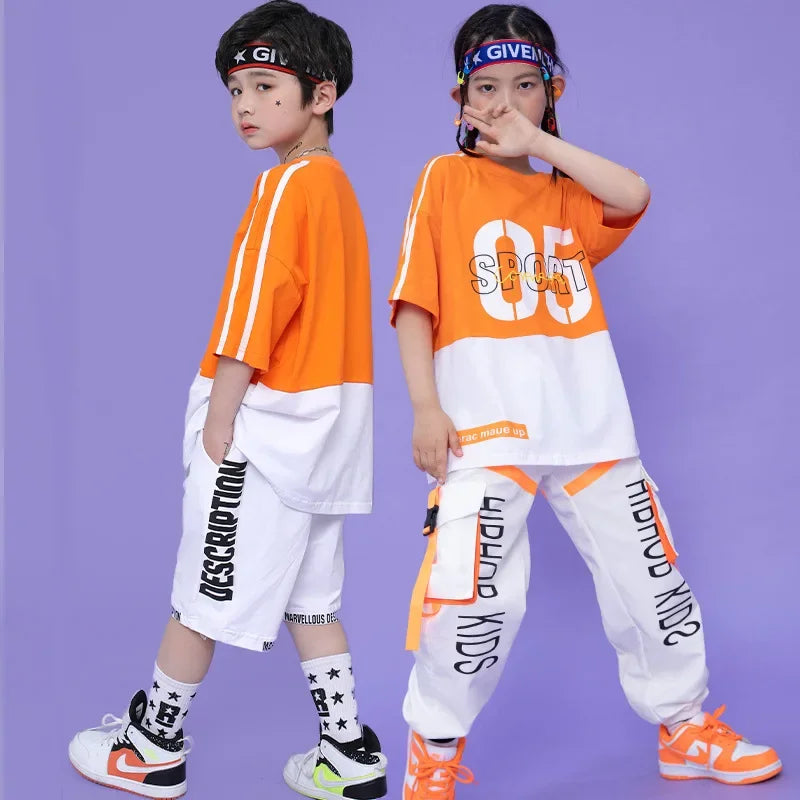 Boys Hip Hop Contrast T shirt Cargo Pants Girls Street Dance Shorts Children