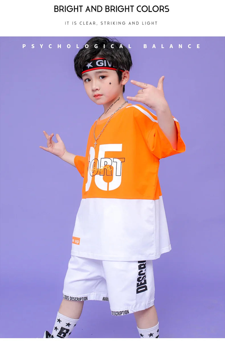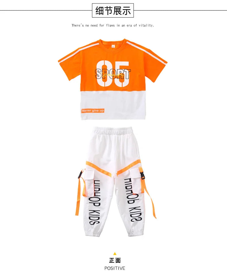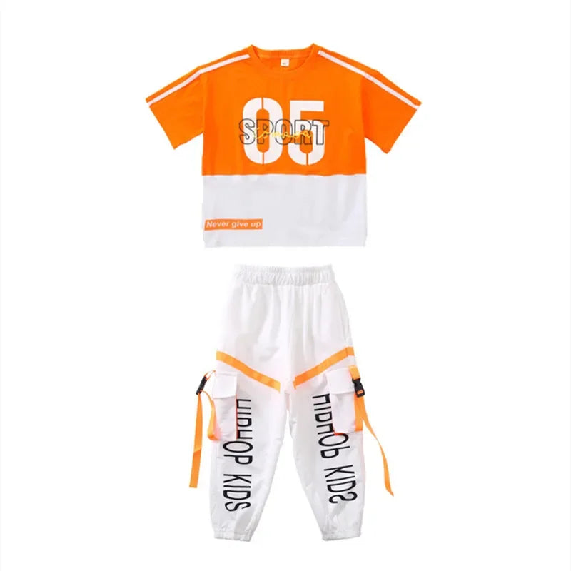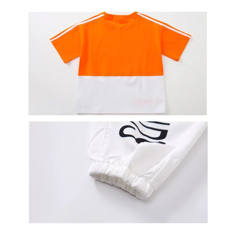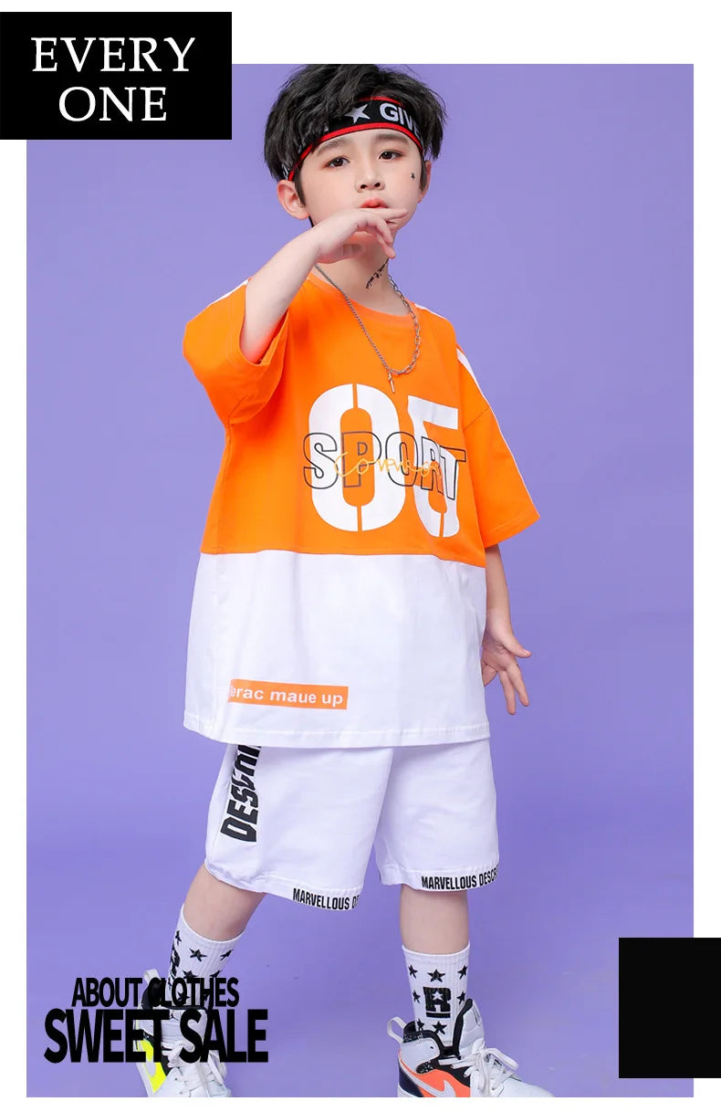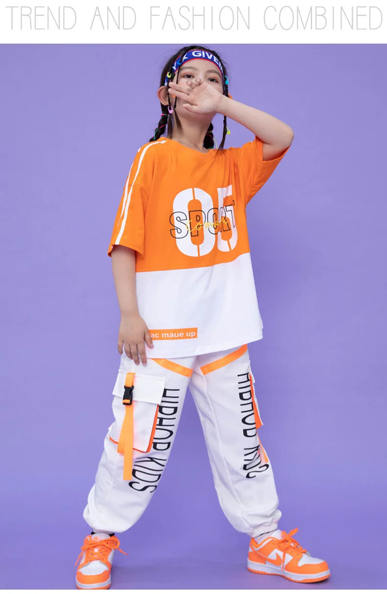 Boys Hip Hop Contrast T shirt Cargo Pants Girls Street Dance Shorts Children