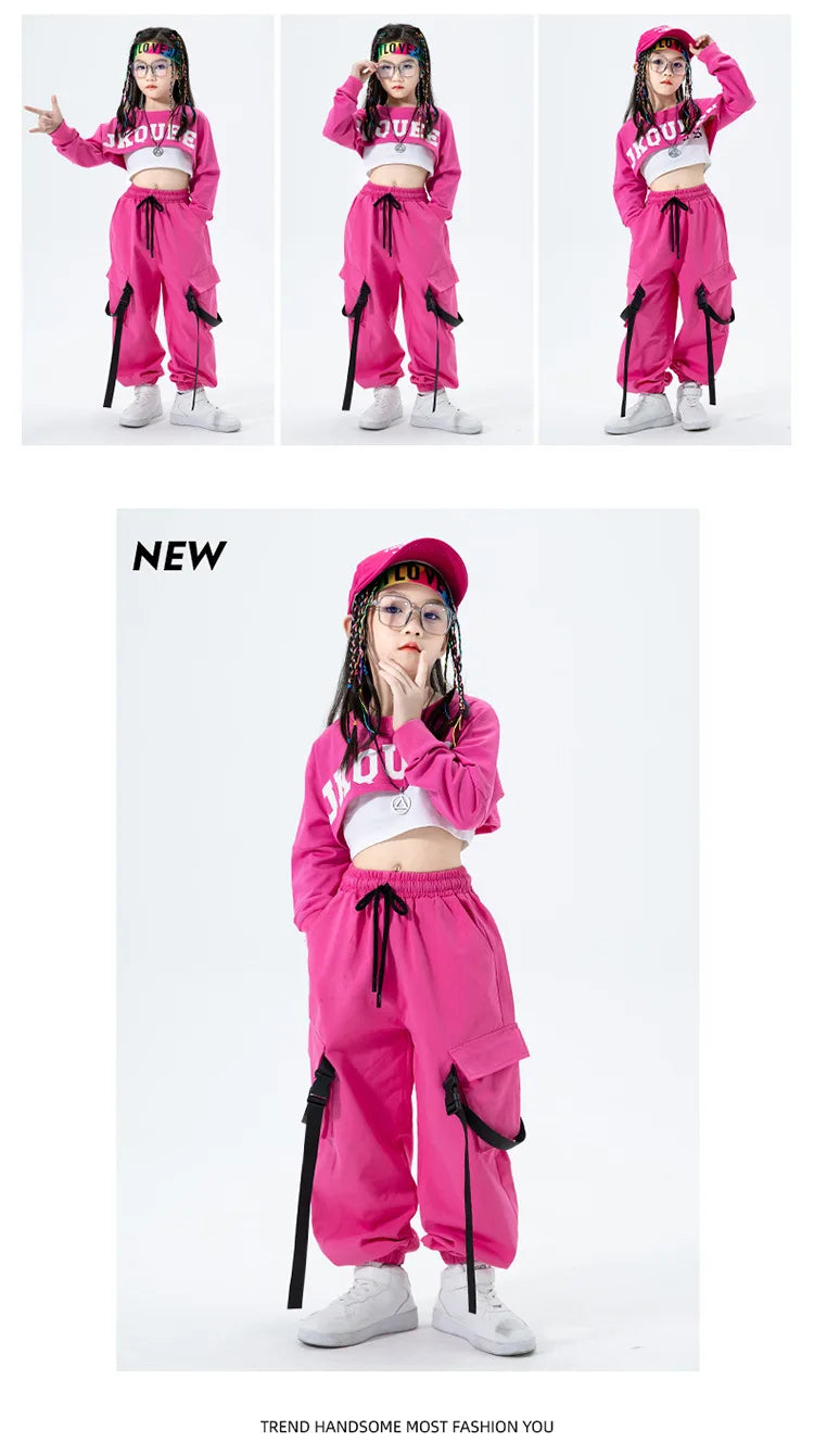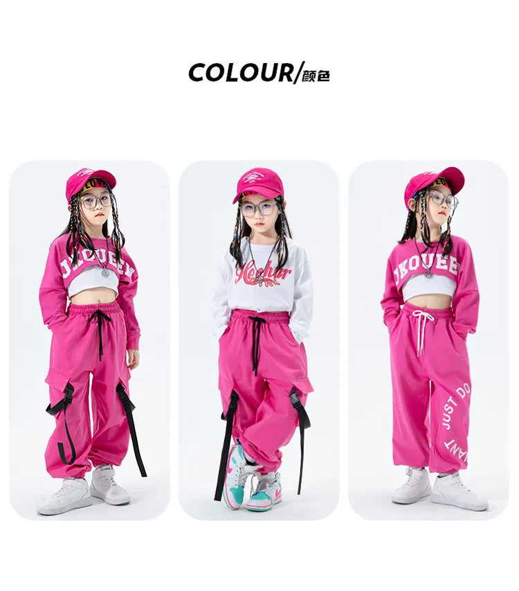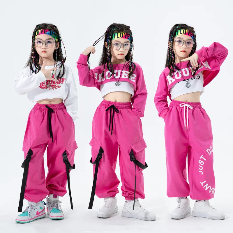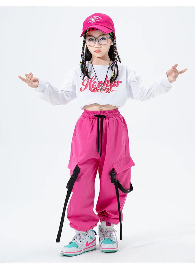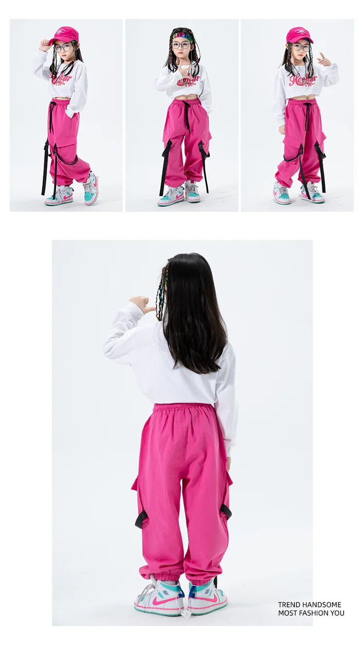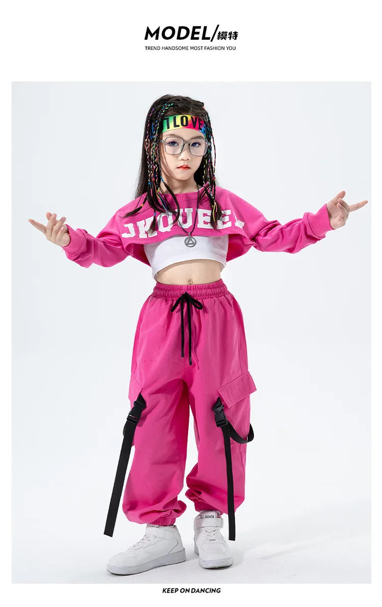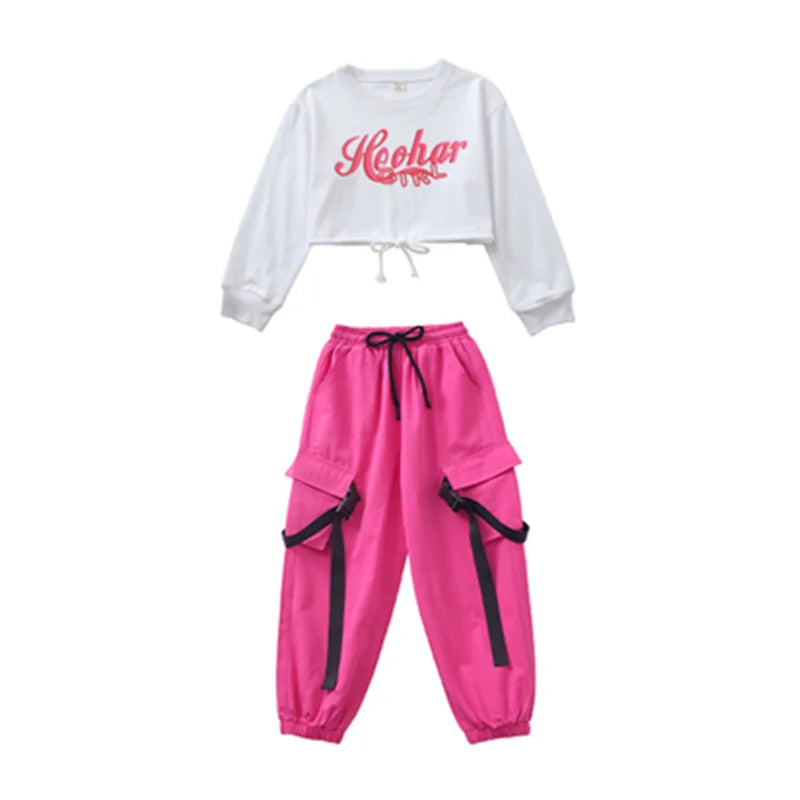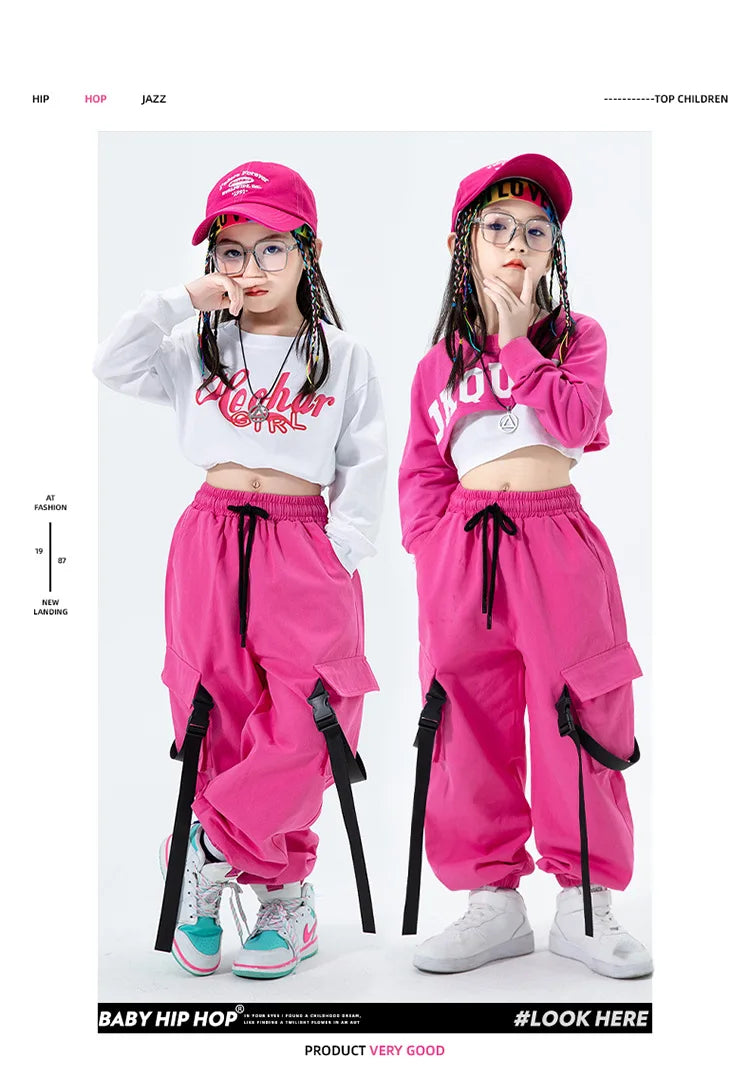 Hip Hop Girls Crop Top Pink Cargo Pants Child Princess Sweatshirt Joggers