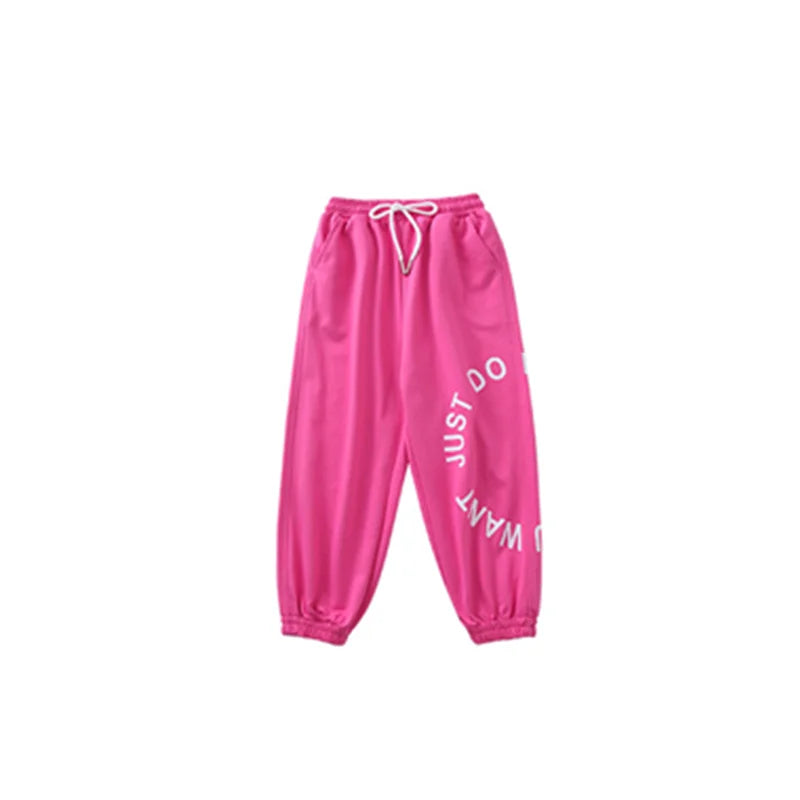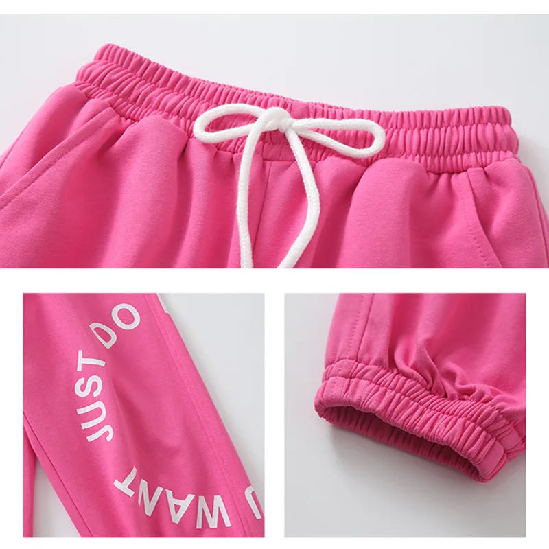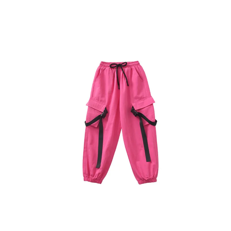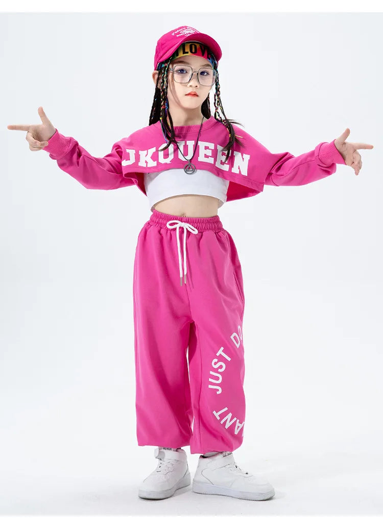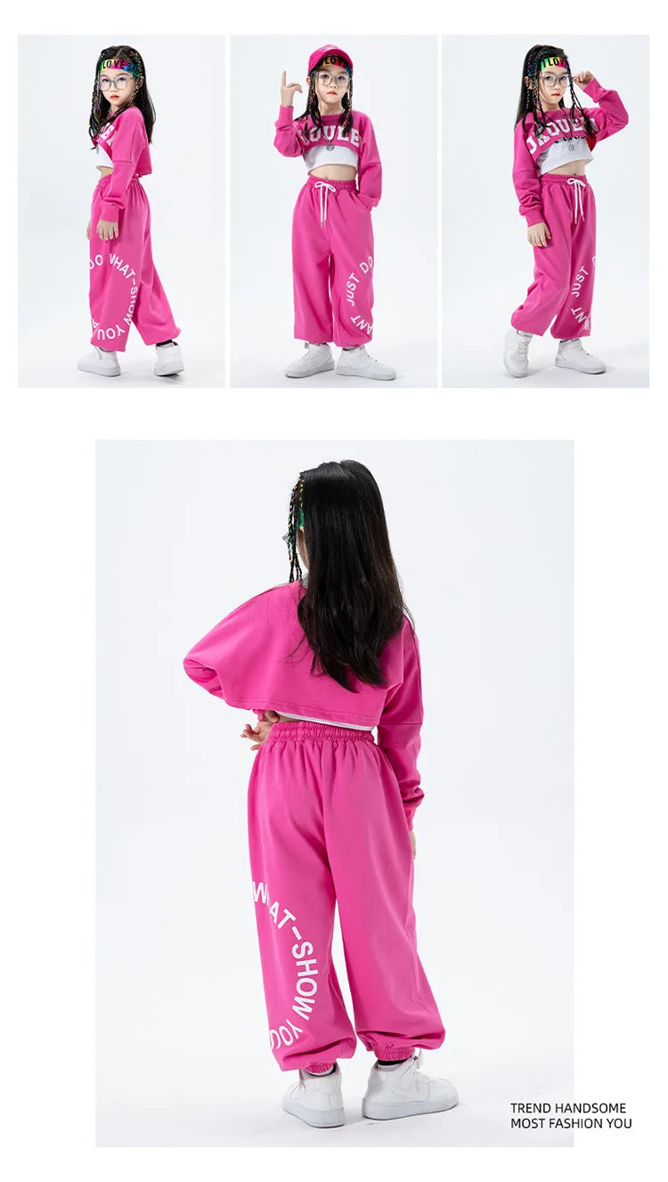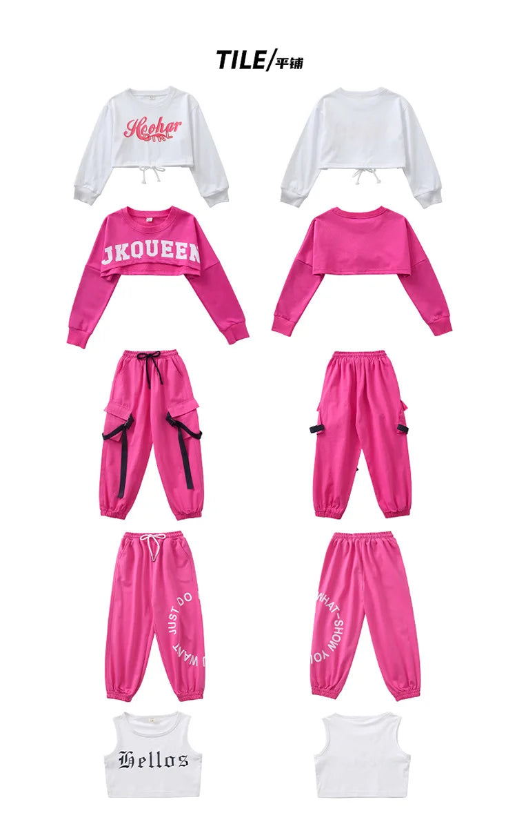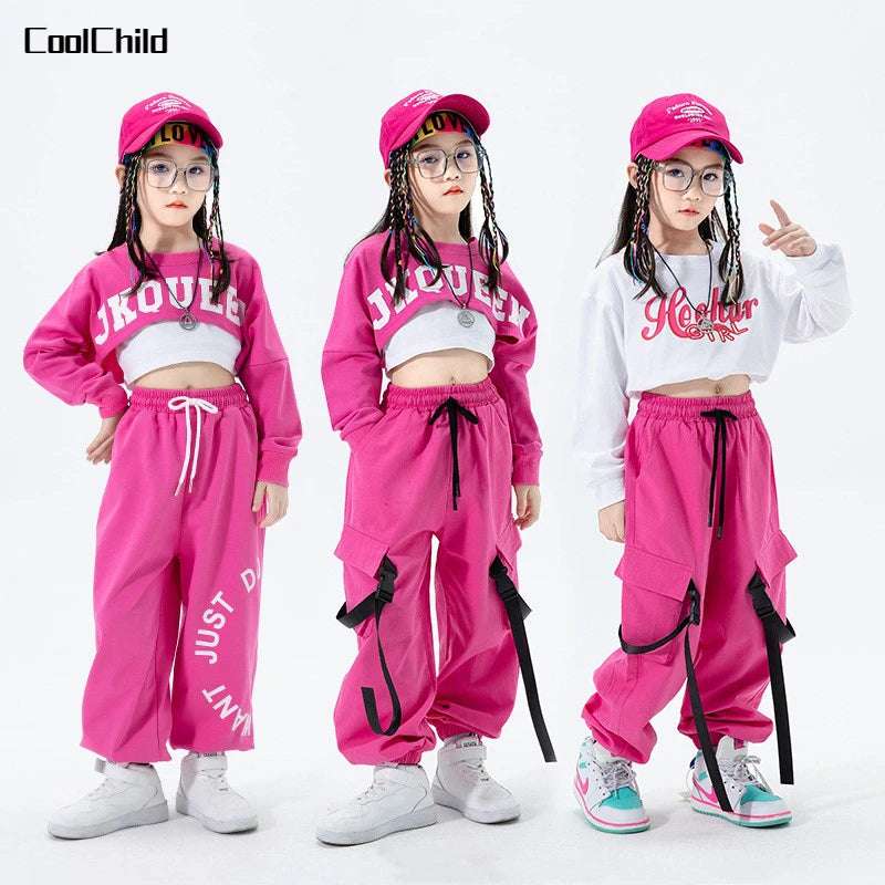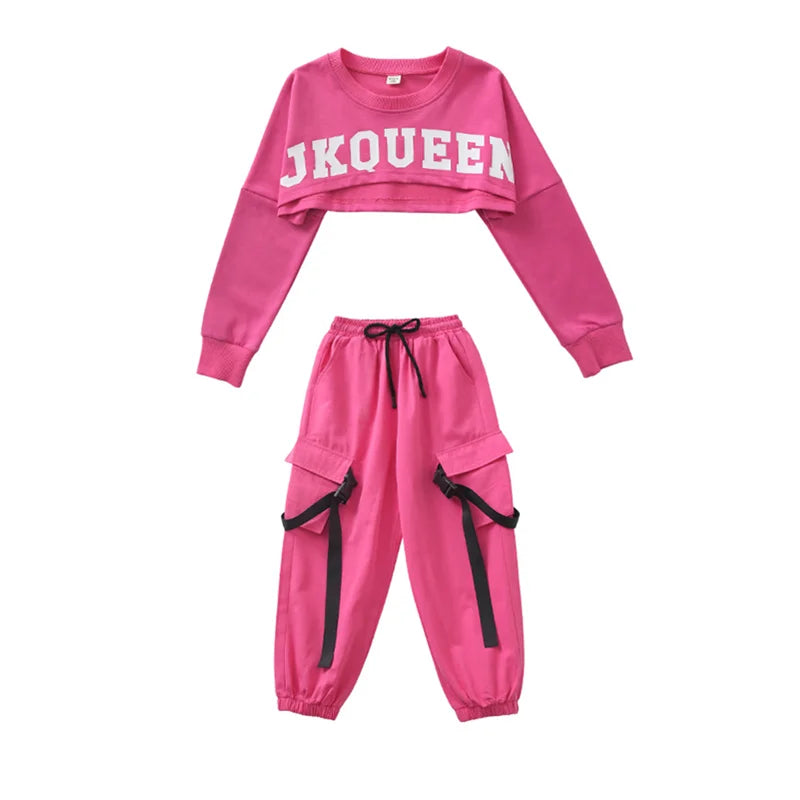 Hip Hop Girls Crop Top Pink Cargo Pants Child Princess Sweatshirt Joggers