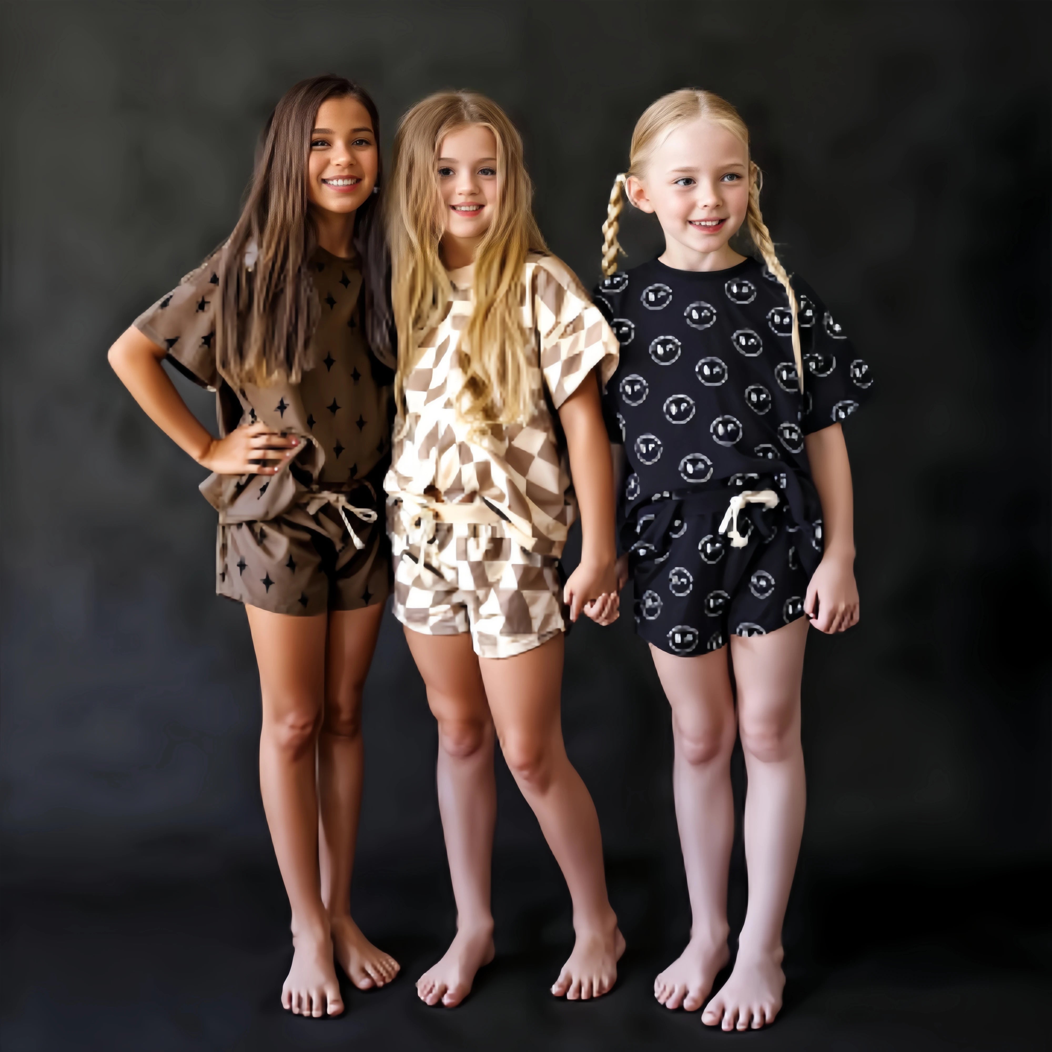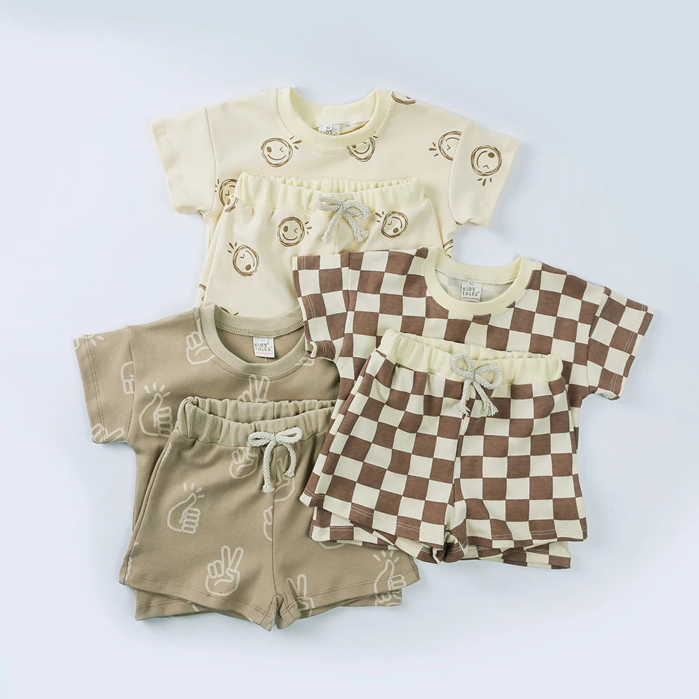 Kids Tales Summer Full print Chidren Clothing Set Soild Cotton Soft T shirt+S...