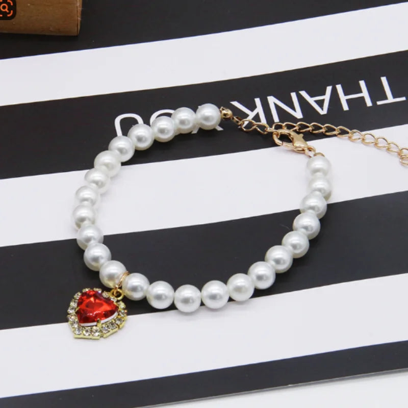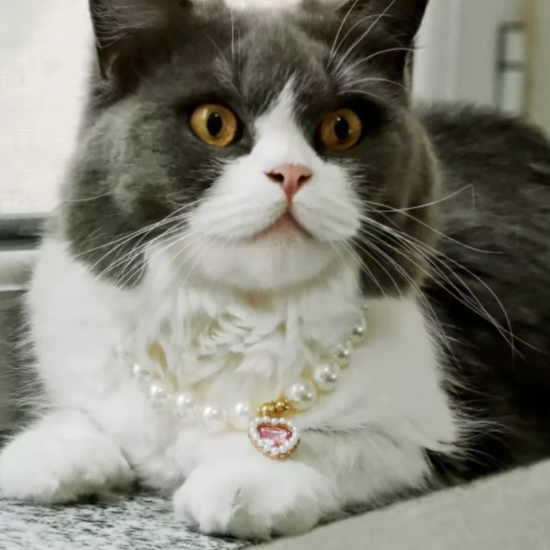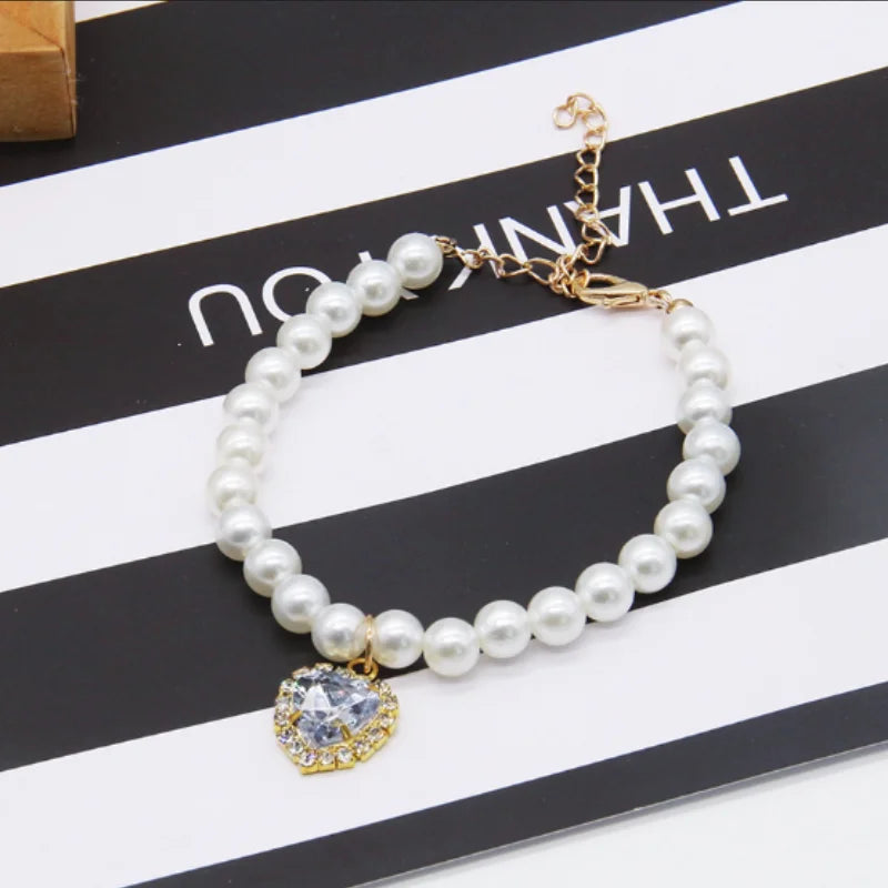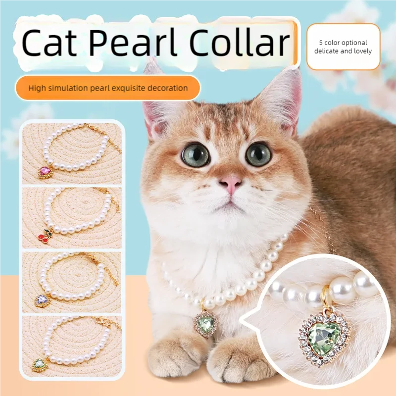 Luxury Pearl Pet Collar Pet Cat Dog Collar Love Pendant Pet Supplies Love Cry...