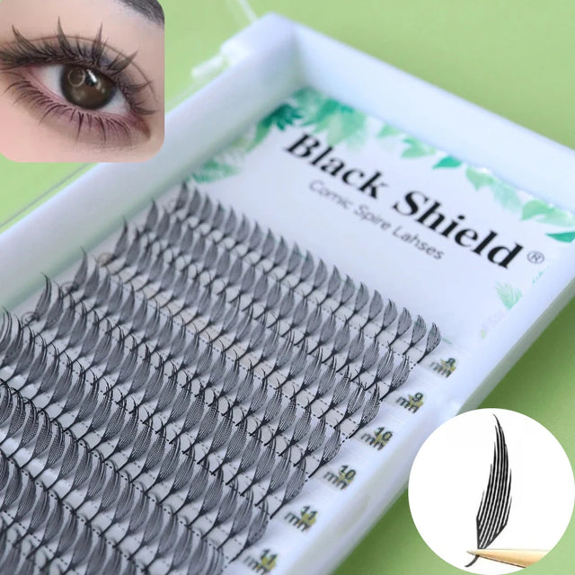 Black Shield Comic Spire Eyelash Extension Natural Lightweight Manga False Eyelashes Premade Fans Feather Lashes for Makeup Tool