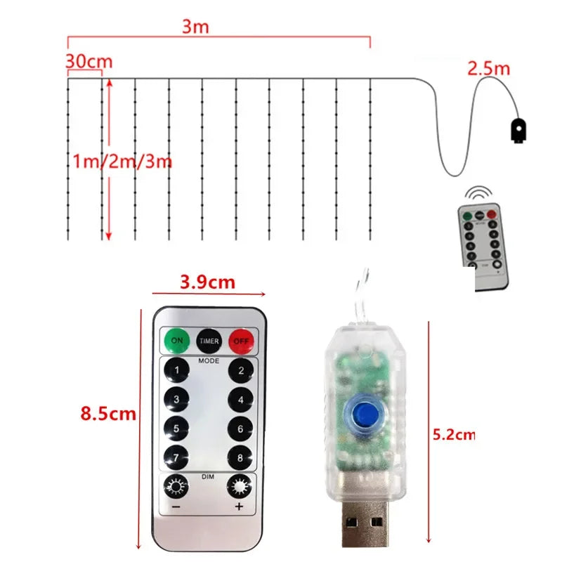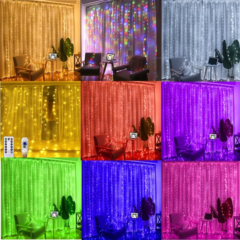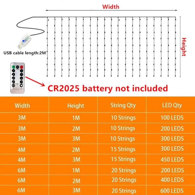 600/300/200/100LED Curtain String Lights Window USB Powered Fairy Light New Year 2025 Garland Led Lights ...