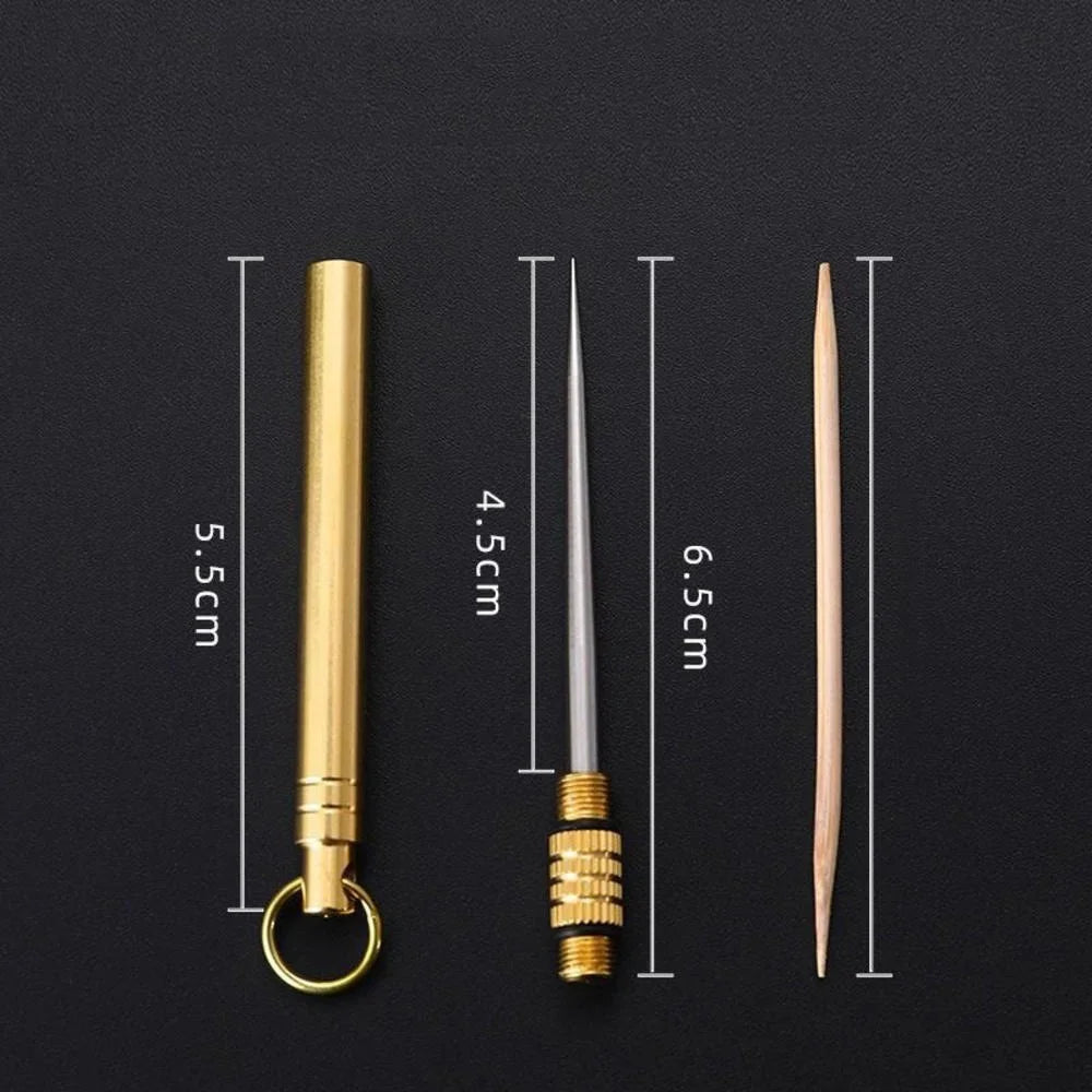 Two-ended screw fixing design, not only a pocket toothpick but can also be expanded as an emergency EDC tool.