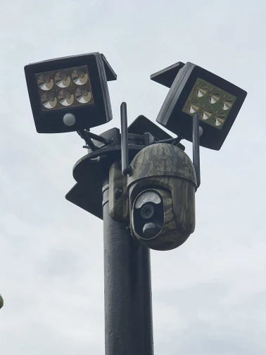 solar flood light at the front door.Pan Tilt Zoom Remotely Control