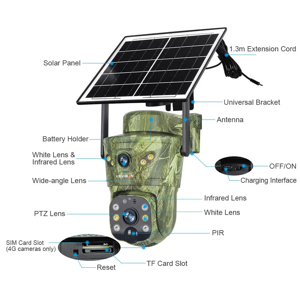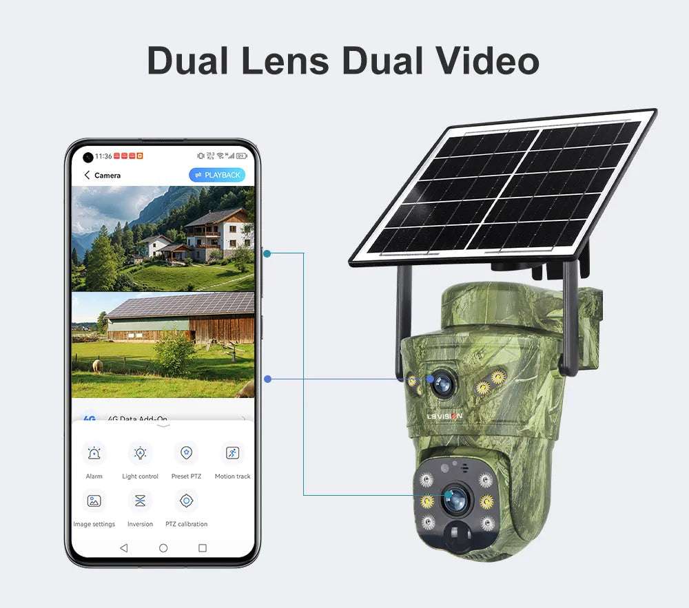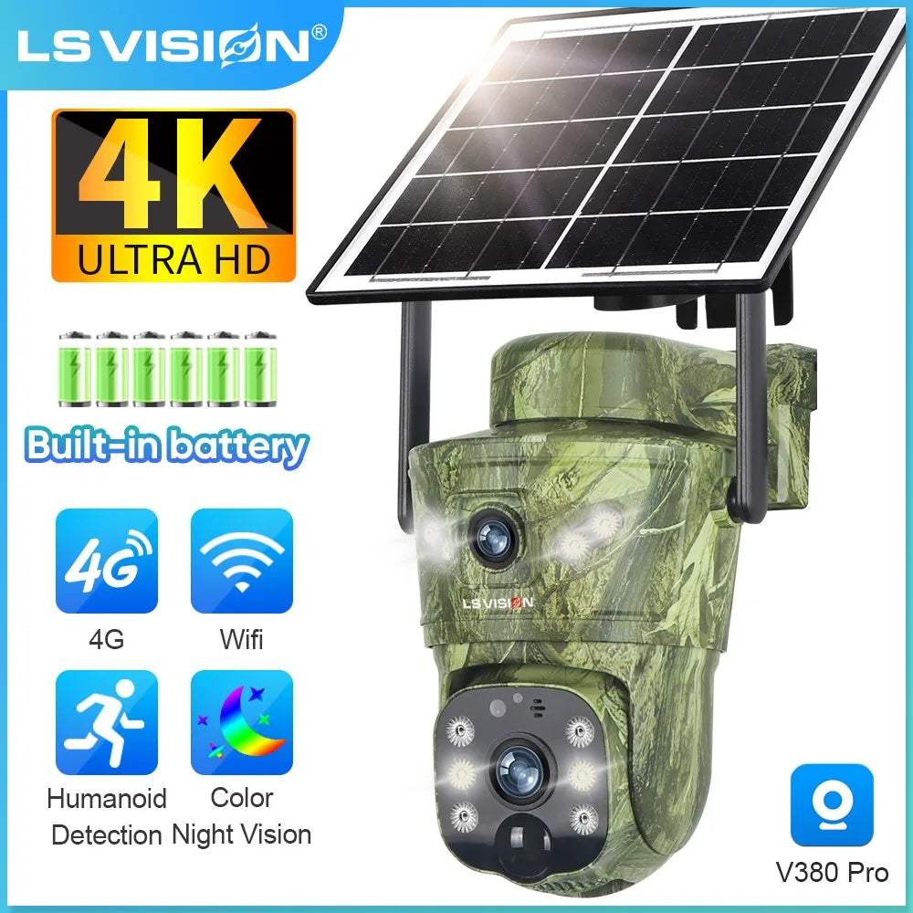 LS Vision 4K 4G Solar Wild Camera Outdoor Wifi Dual Screen PTZ Color Night Vi...