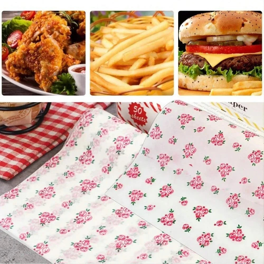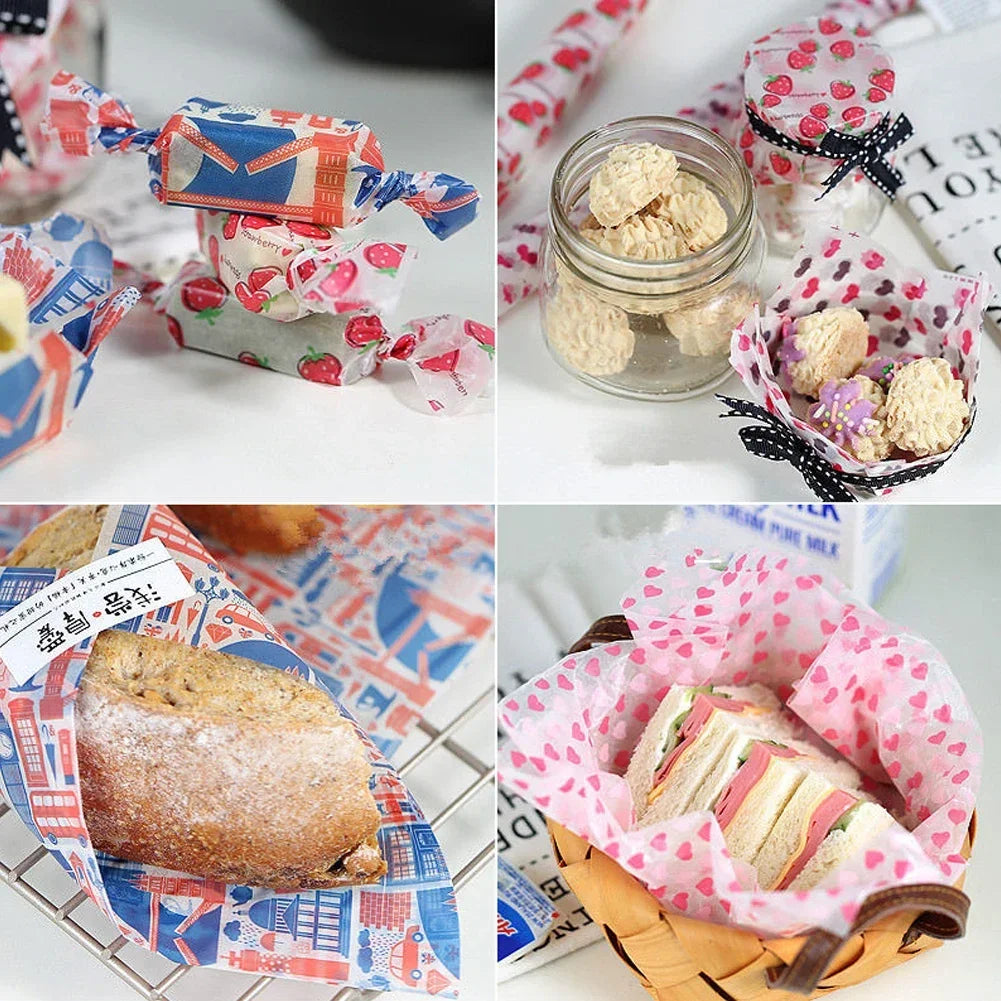 Wax Paper for Sandwiches and Bakery with Heart and Flower Patterns Decorative Food Wrapping Paper for Baking and Packaging