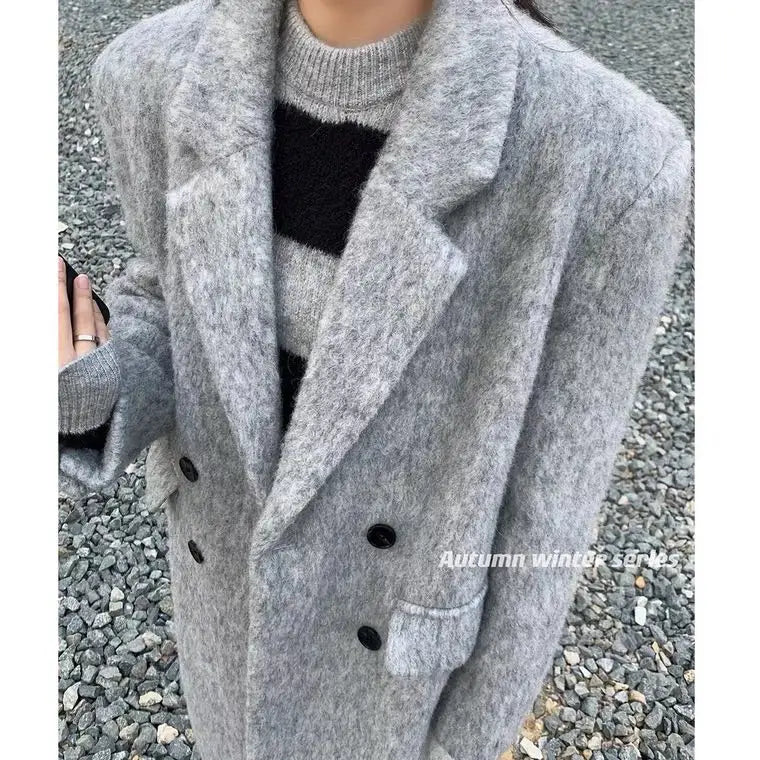 2025 NEW Women Outwear Simple Thicken Winter Coats Loose Solid Office Lady Vintage Newly Leisure ic All-mat Trendy Street