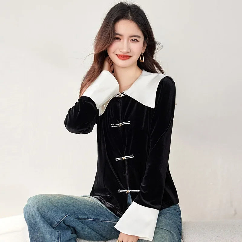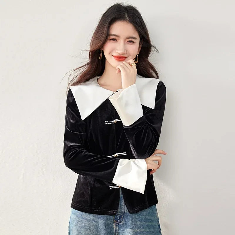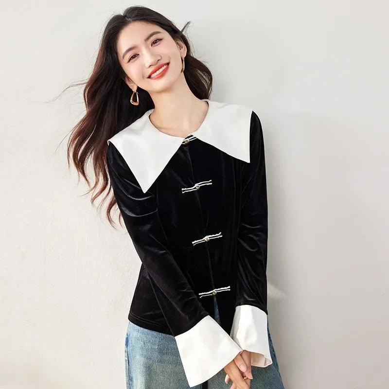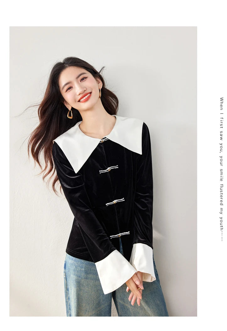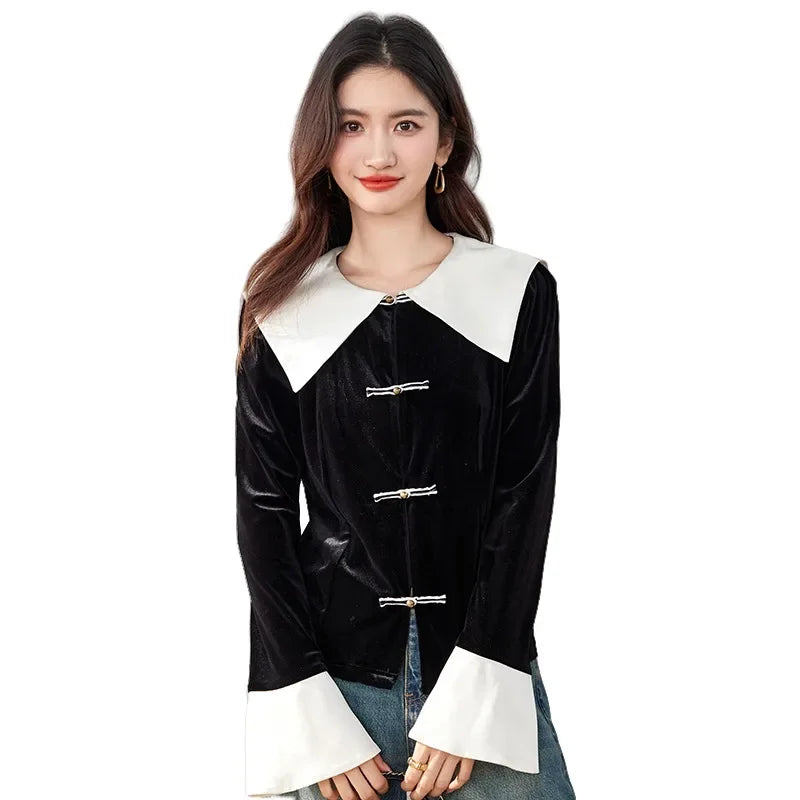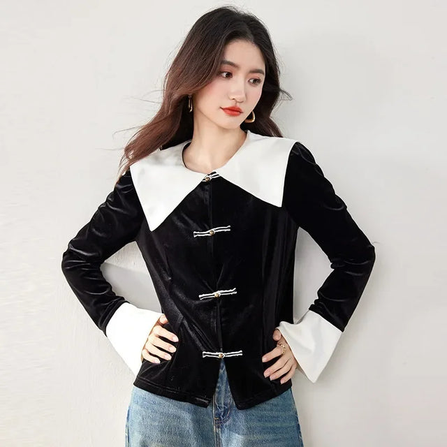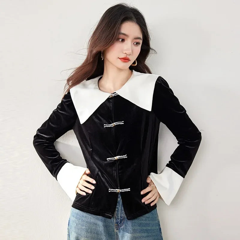2025 Women's Korean Fashion Slim Fit Jacket with Velvet Coat for Autumn and Winter Women's Short Splicing...