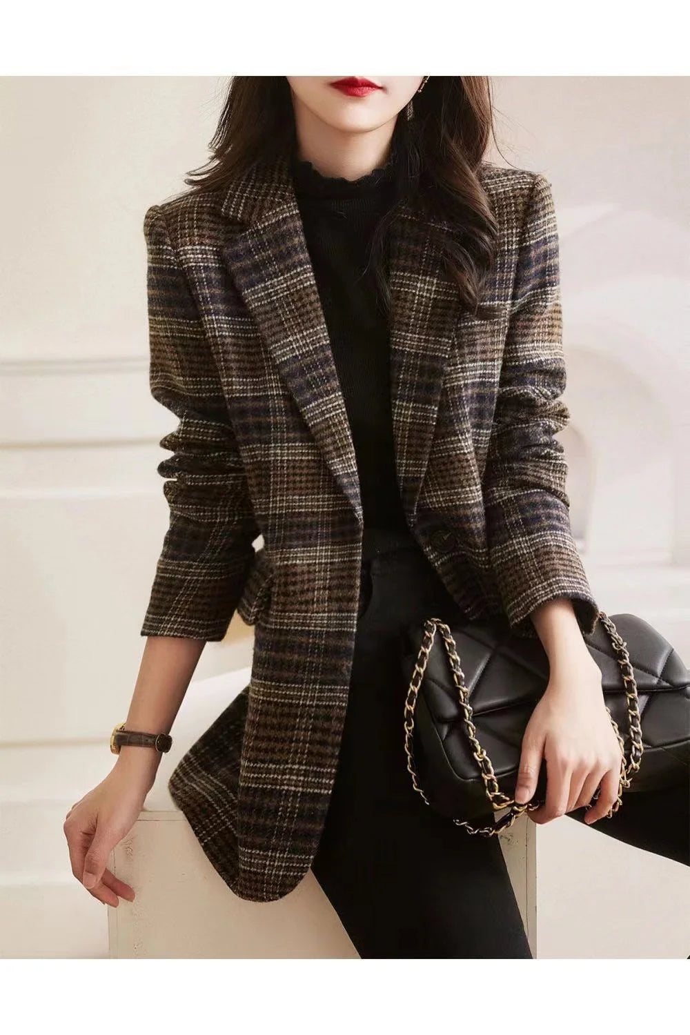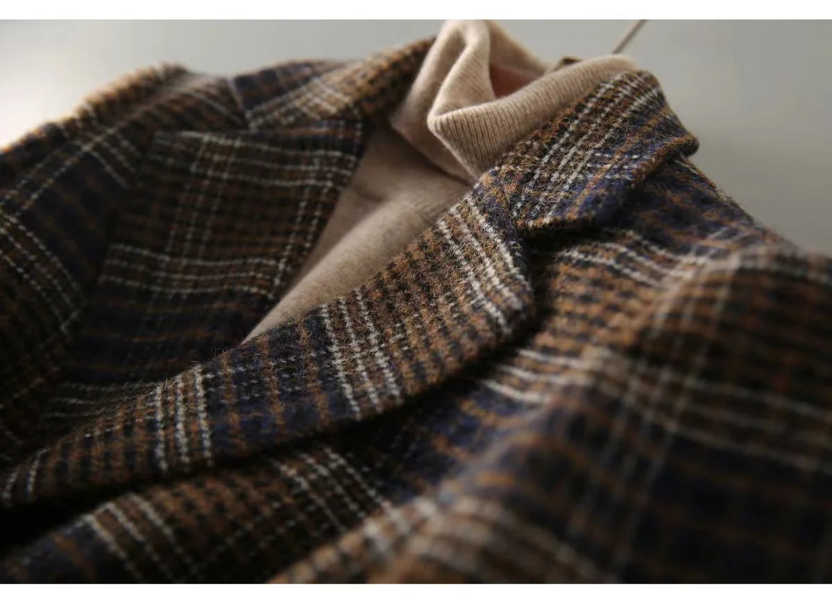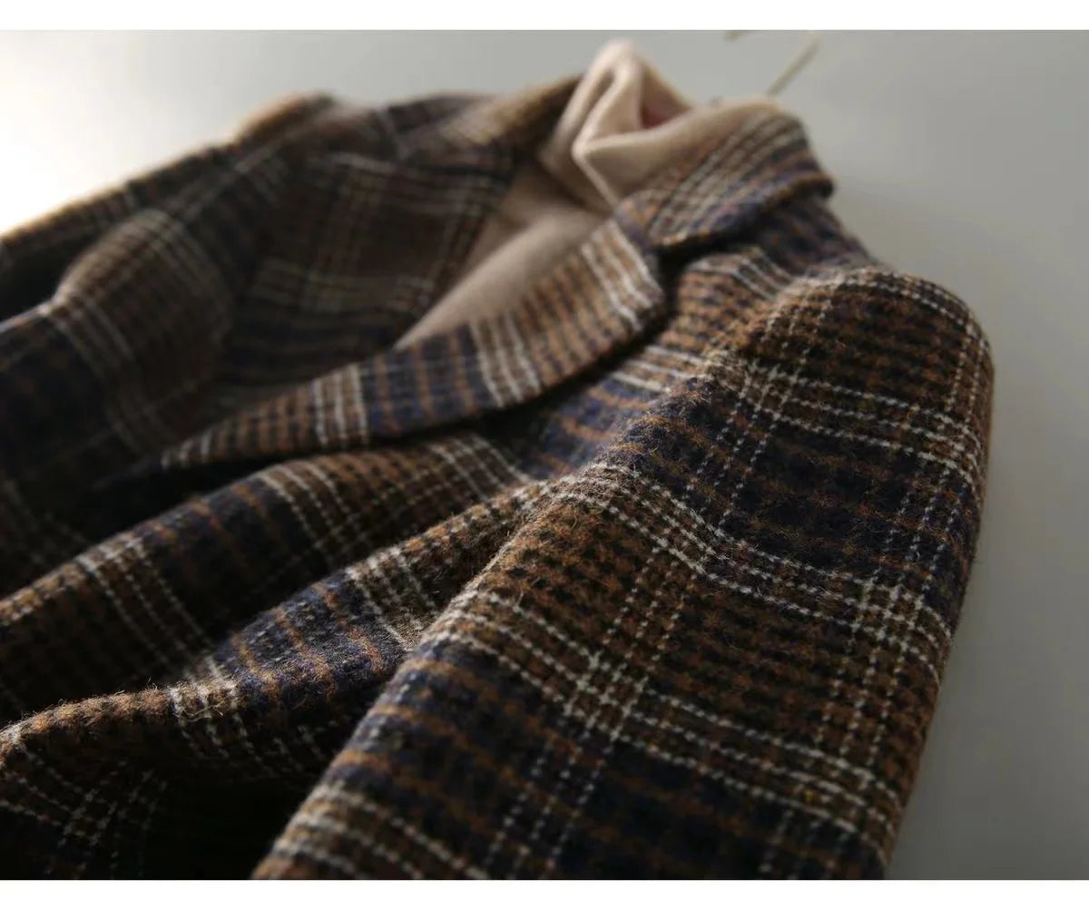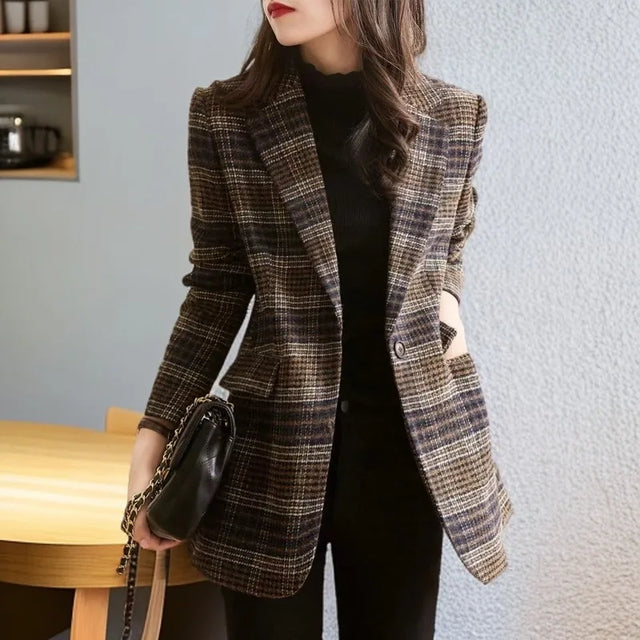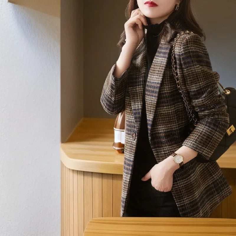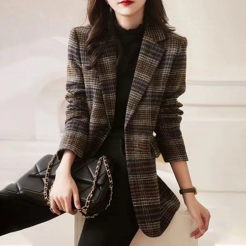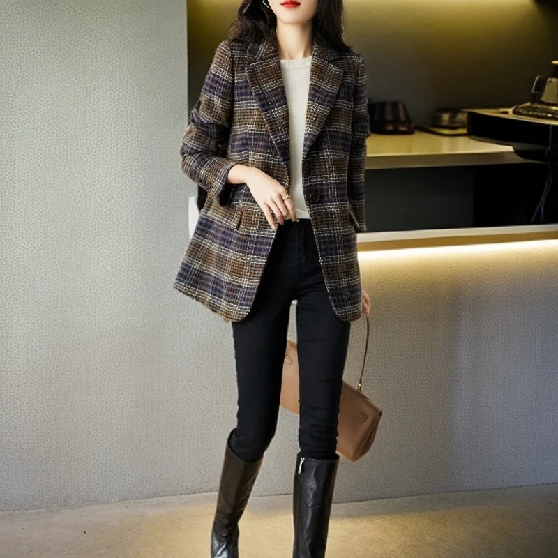 2025Korean Women Woolen Single-Breasted Long Sleeve Notched Blazer Coat Fall Winter Female Casual Loose A...
