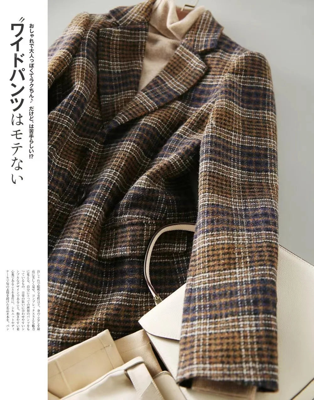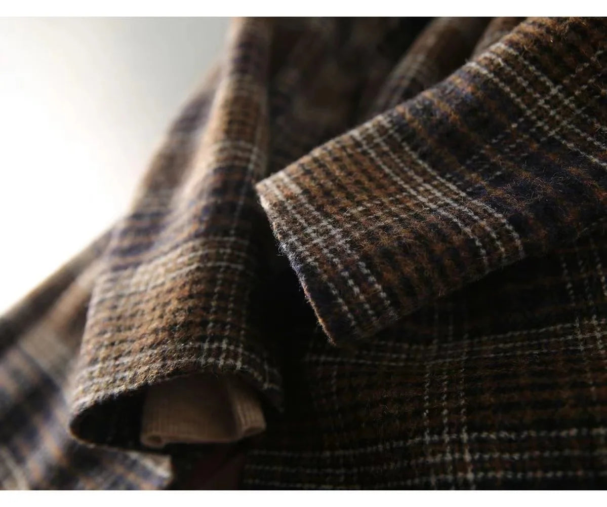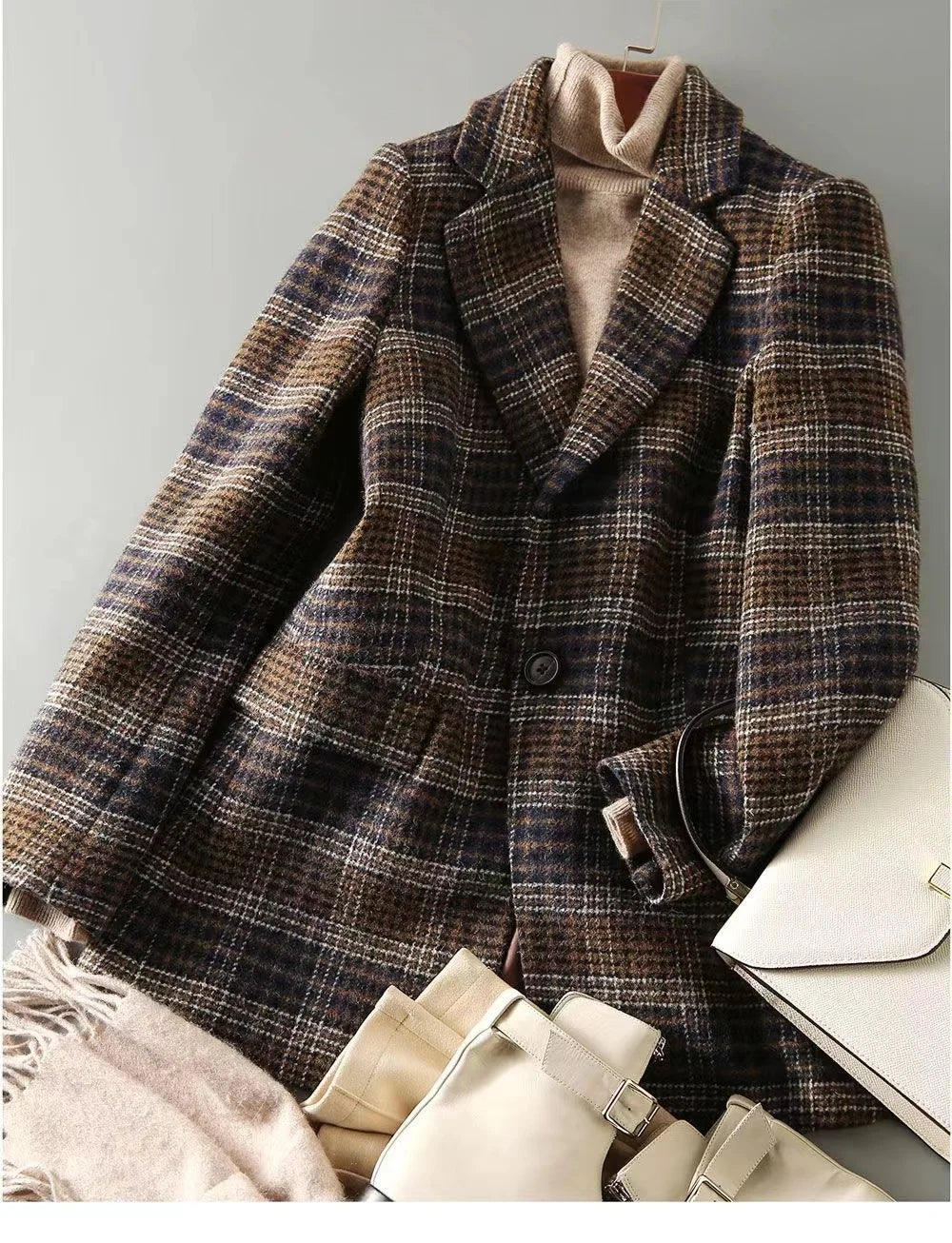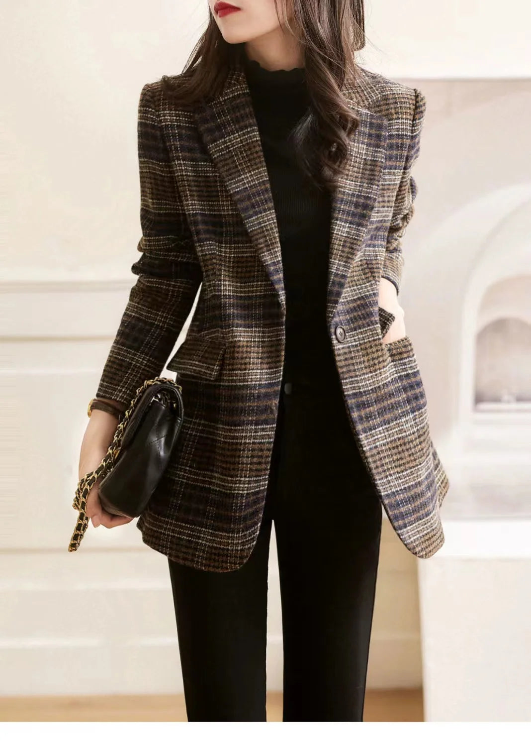 2025Korean Women Woolen Single-Breasted Long Sleeve Notched Blazer Coat Fall Winter Female Casual Loose A...