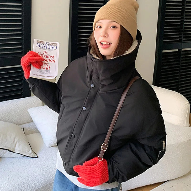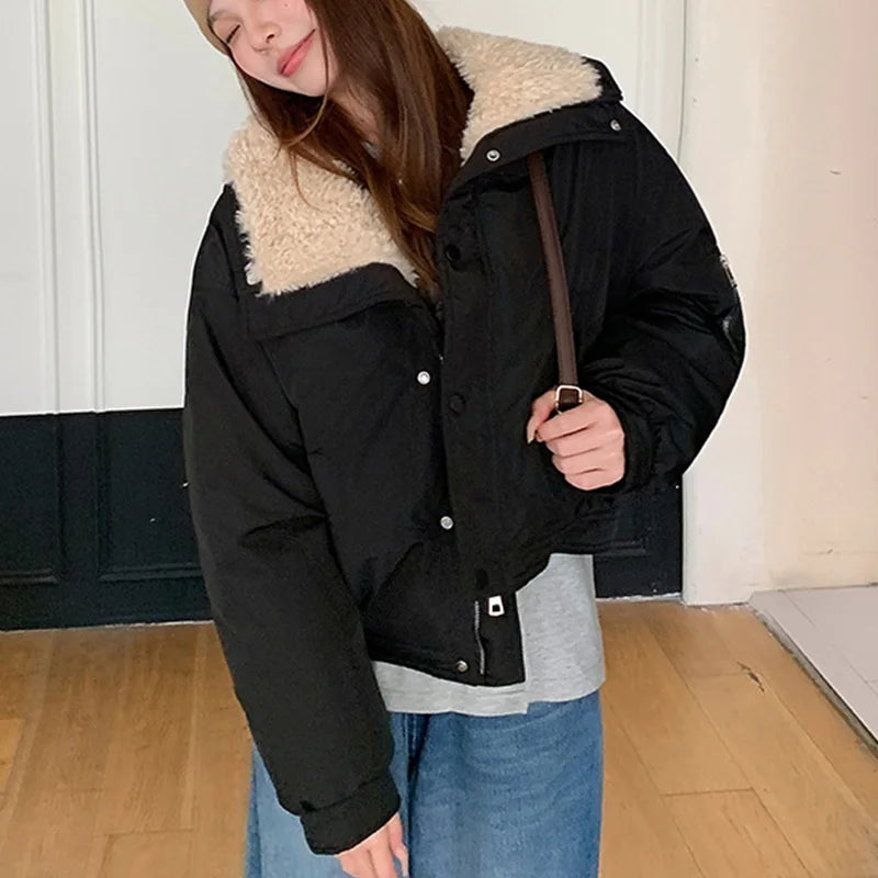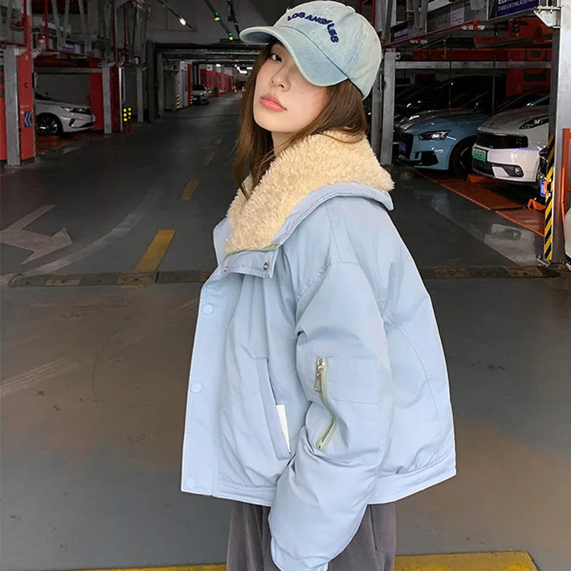 Faux Wool Lamb Collar Parkas Women Fashion Zipper Up Short Parka Jacket Woman Winter Thicken Warm High Qu...