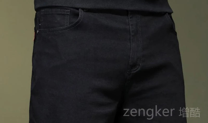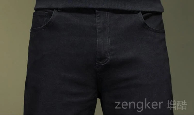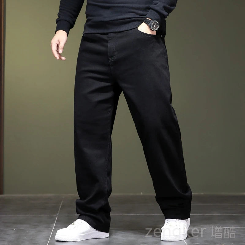 High elasticity spring autumn big size black jeans straight jeans men plus large size youth elastic long ...