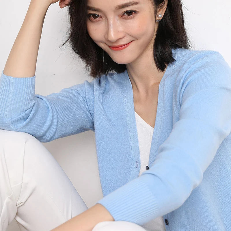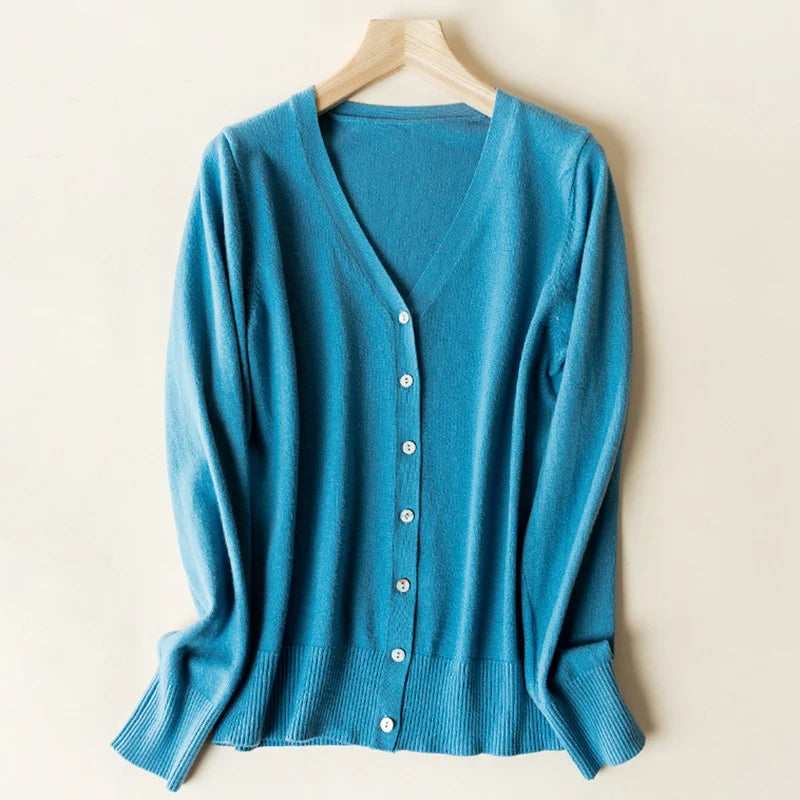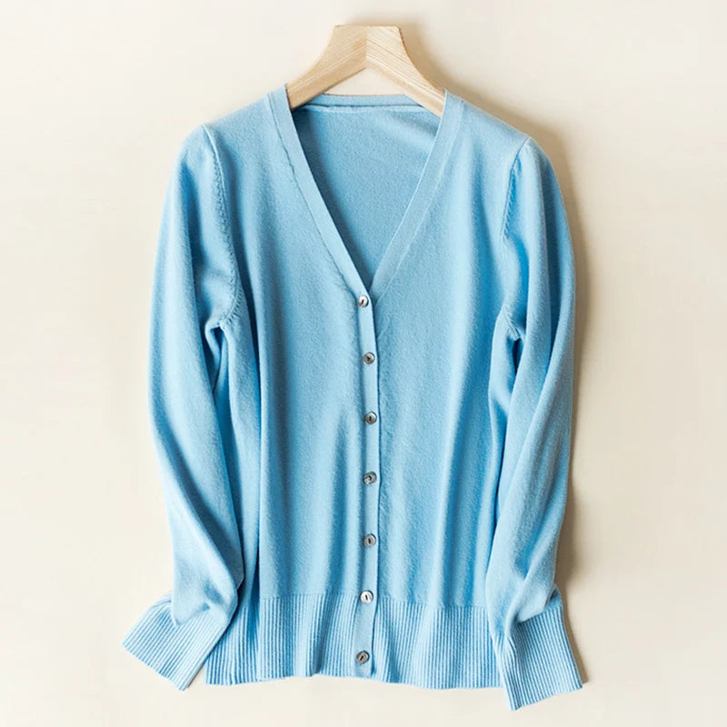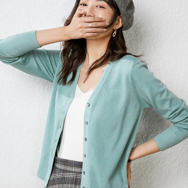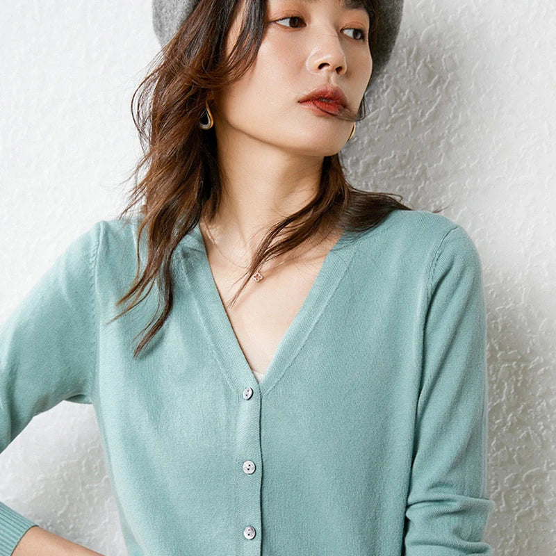 Single Breasted V Neck Sweater Cardigans Women Basic Solid Color Long Sleeve Cardigan Woman Soft Elastic ...