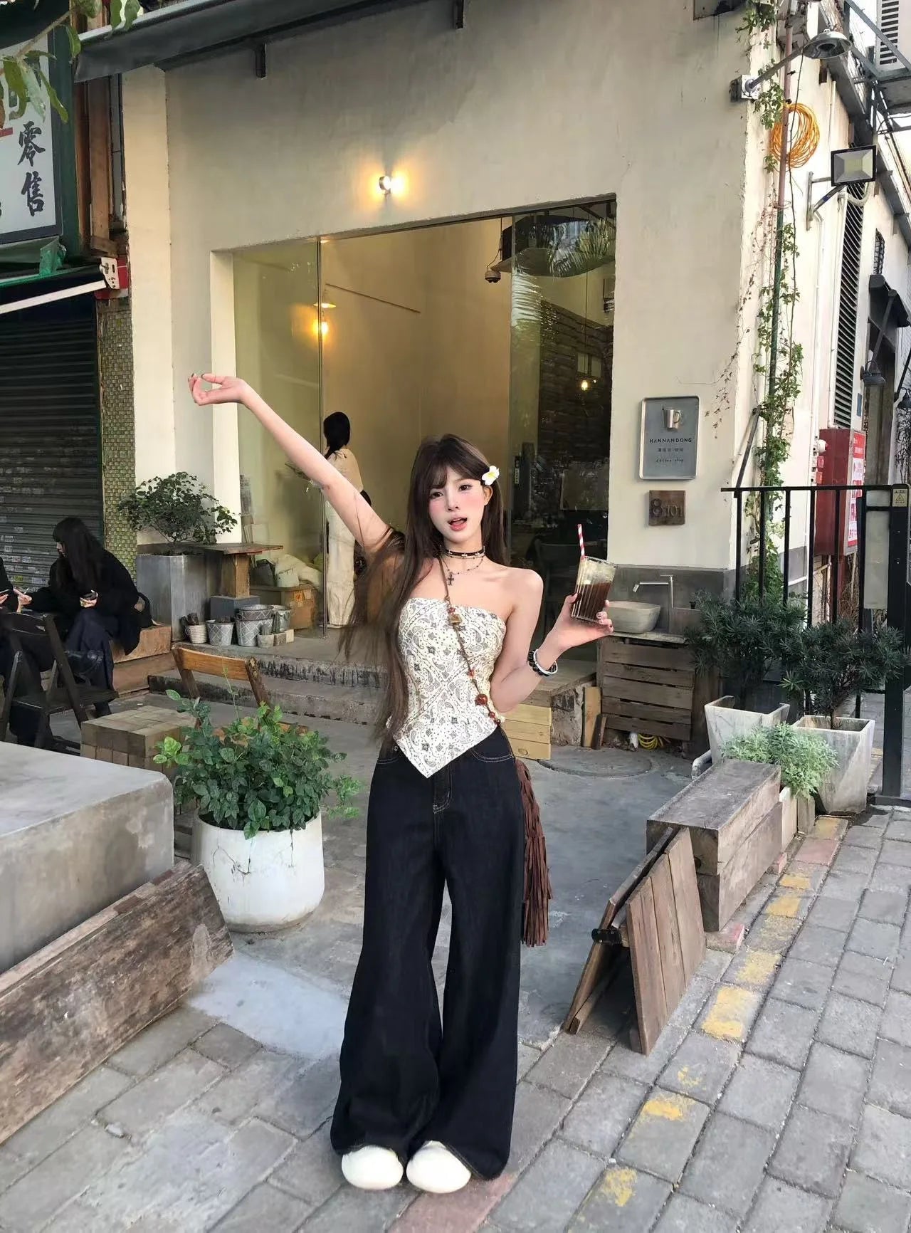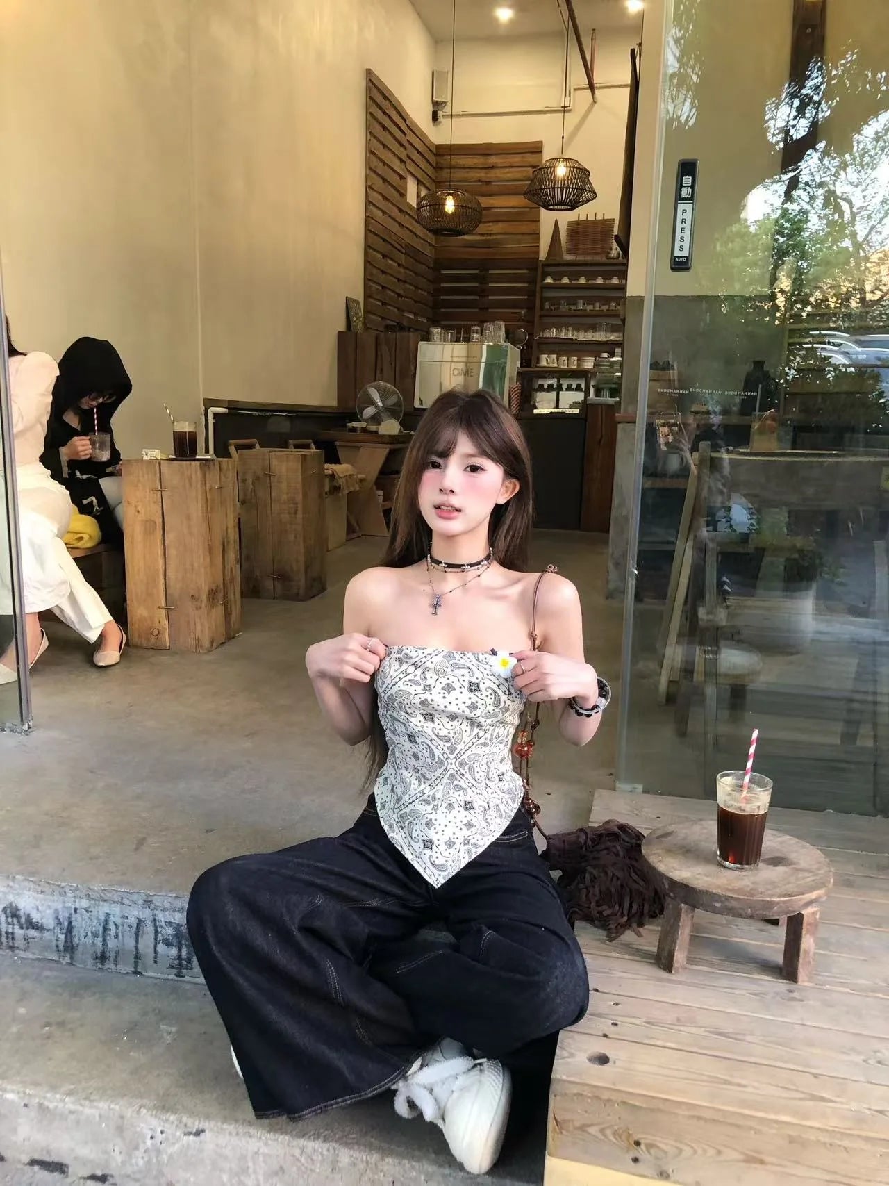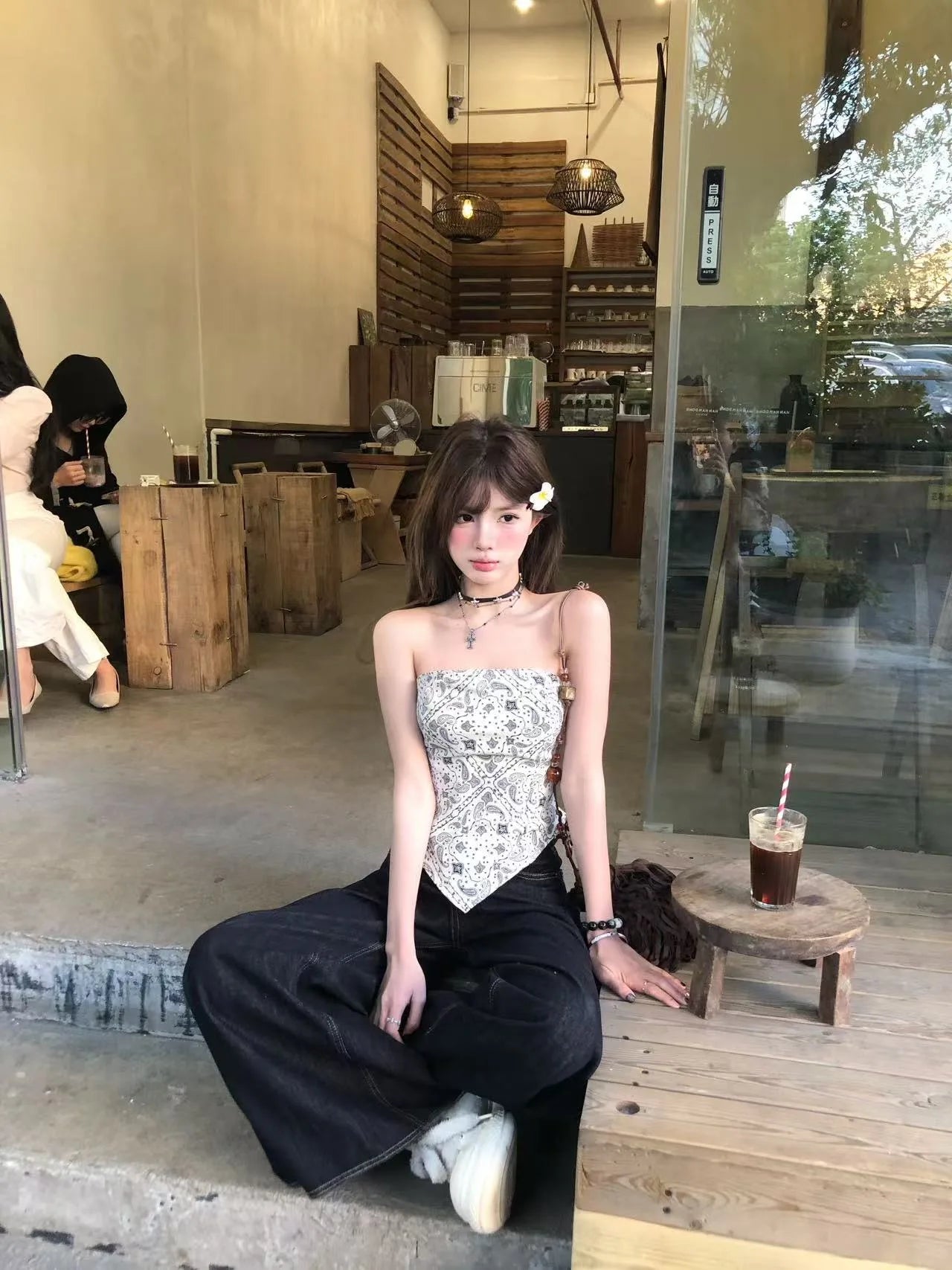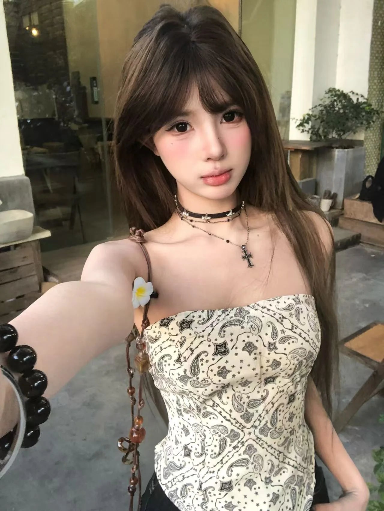 Vintage Pattern Print Slim Women Tank Tops Backless Sexy Rave Outfits Sleeveless Lace Up Bralette Crop To...