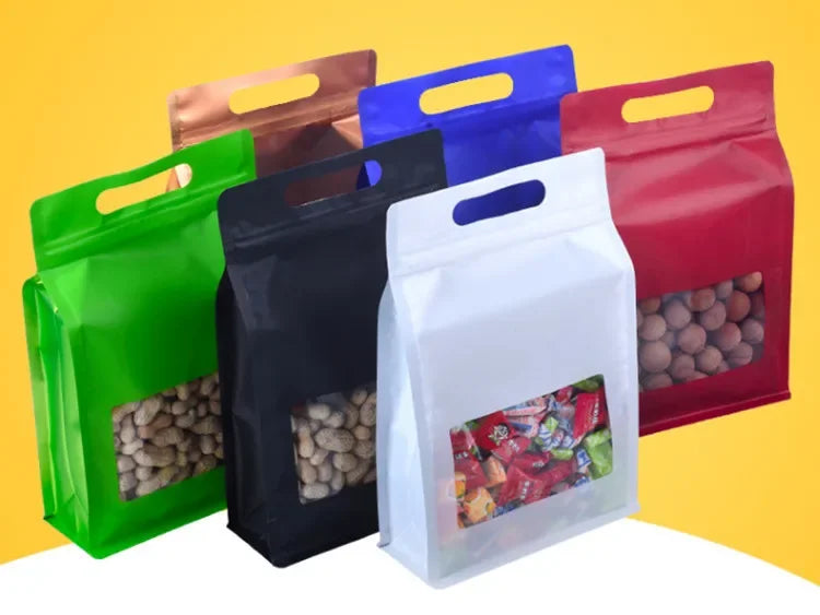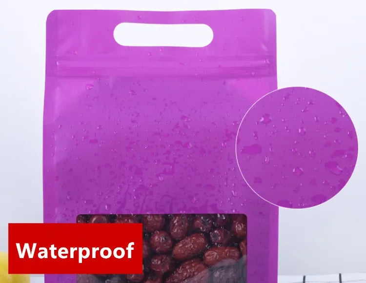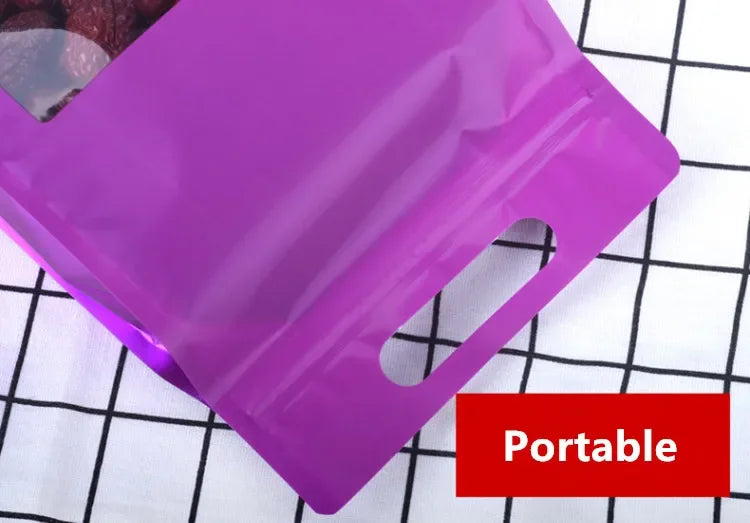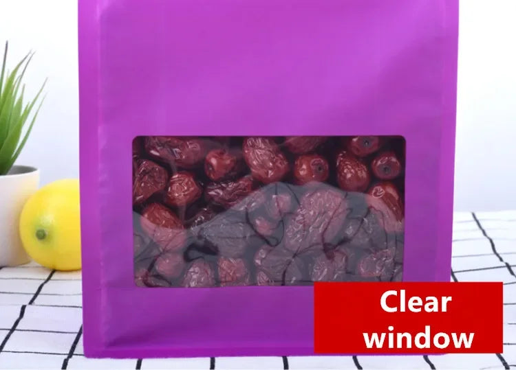 50Pcs Reusable Clear Window Zipper Pouches Resealable Plastic Bags for Tea Sn...