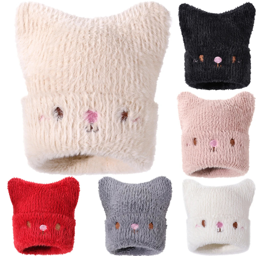 Cute CAT EAR Beanie Faux Fur Winter Hats For Women Fashion Outdoor Dandy Knit...