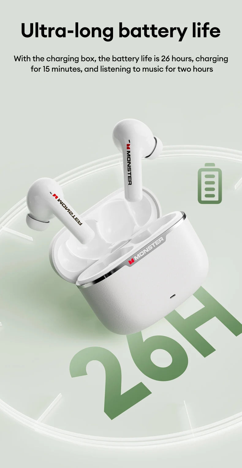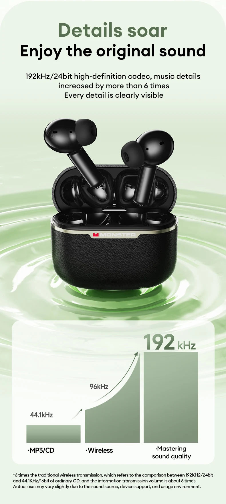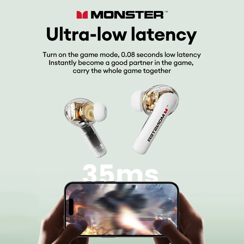 Monster Mqt62 Wireless Bluetooth Earphones Hifi Surround Sound ENC Call Headp...