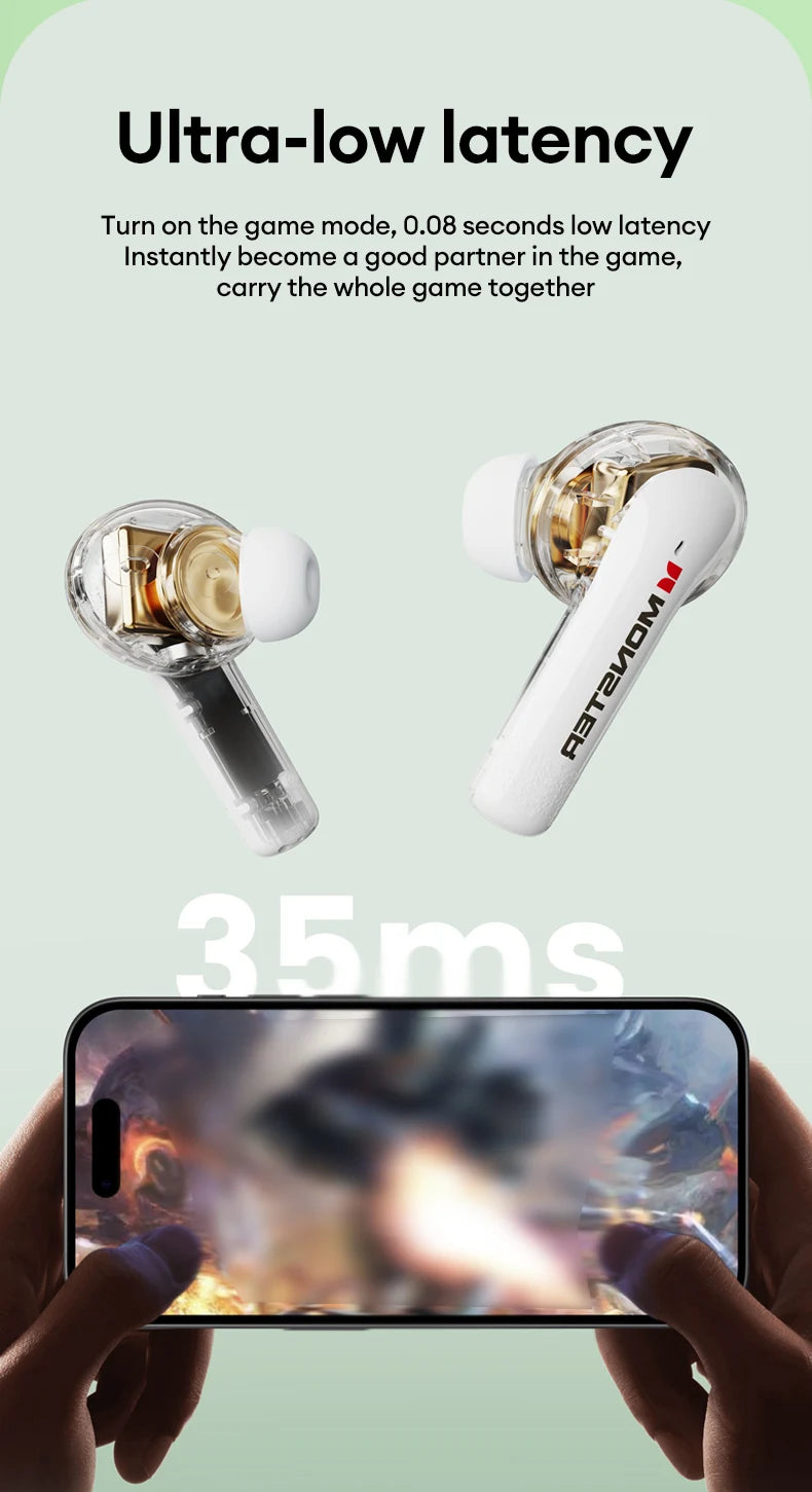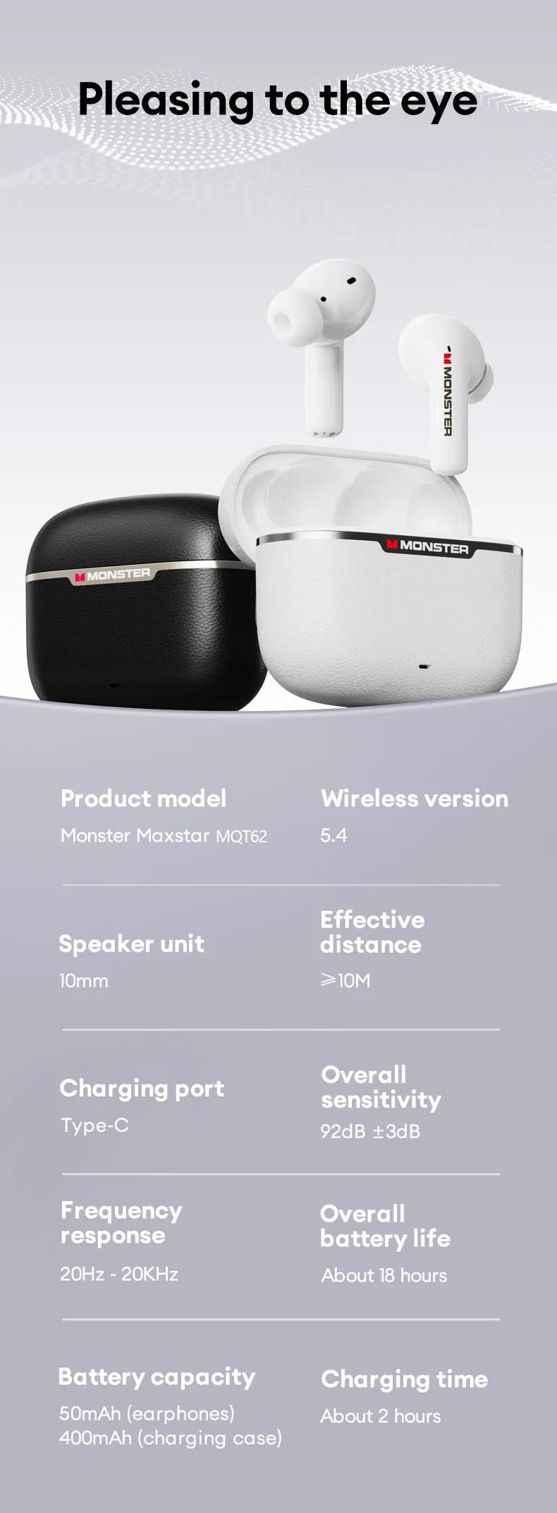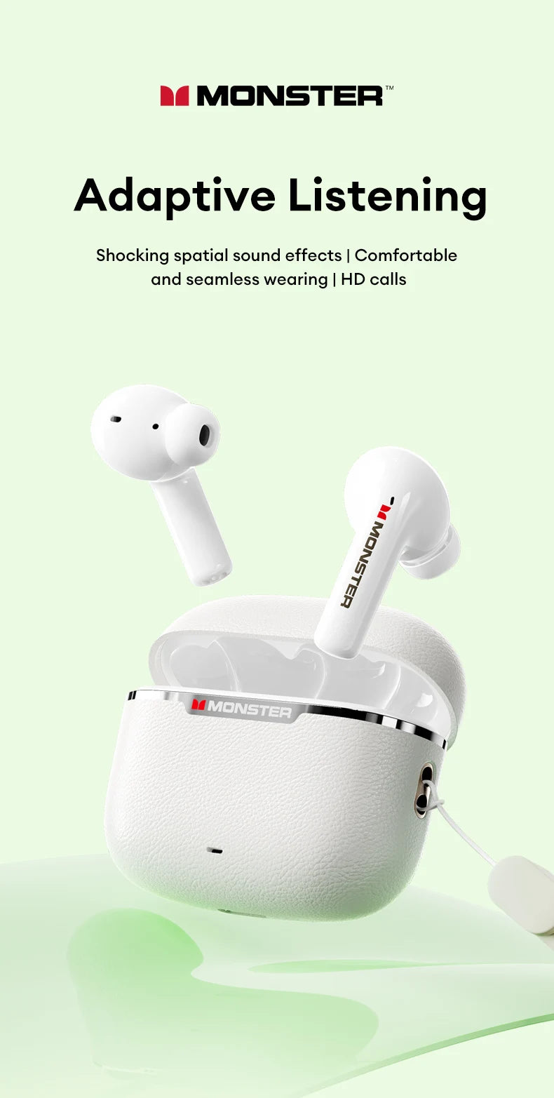 Monster Mqt62 Wireless Bluetooth Earphones Hifi Surround Sound ENC Call Headp...