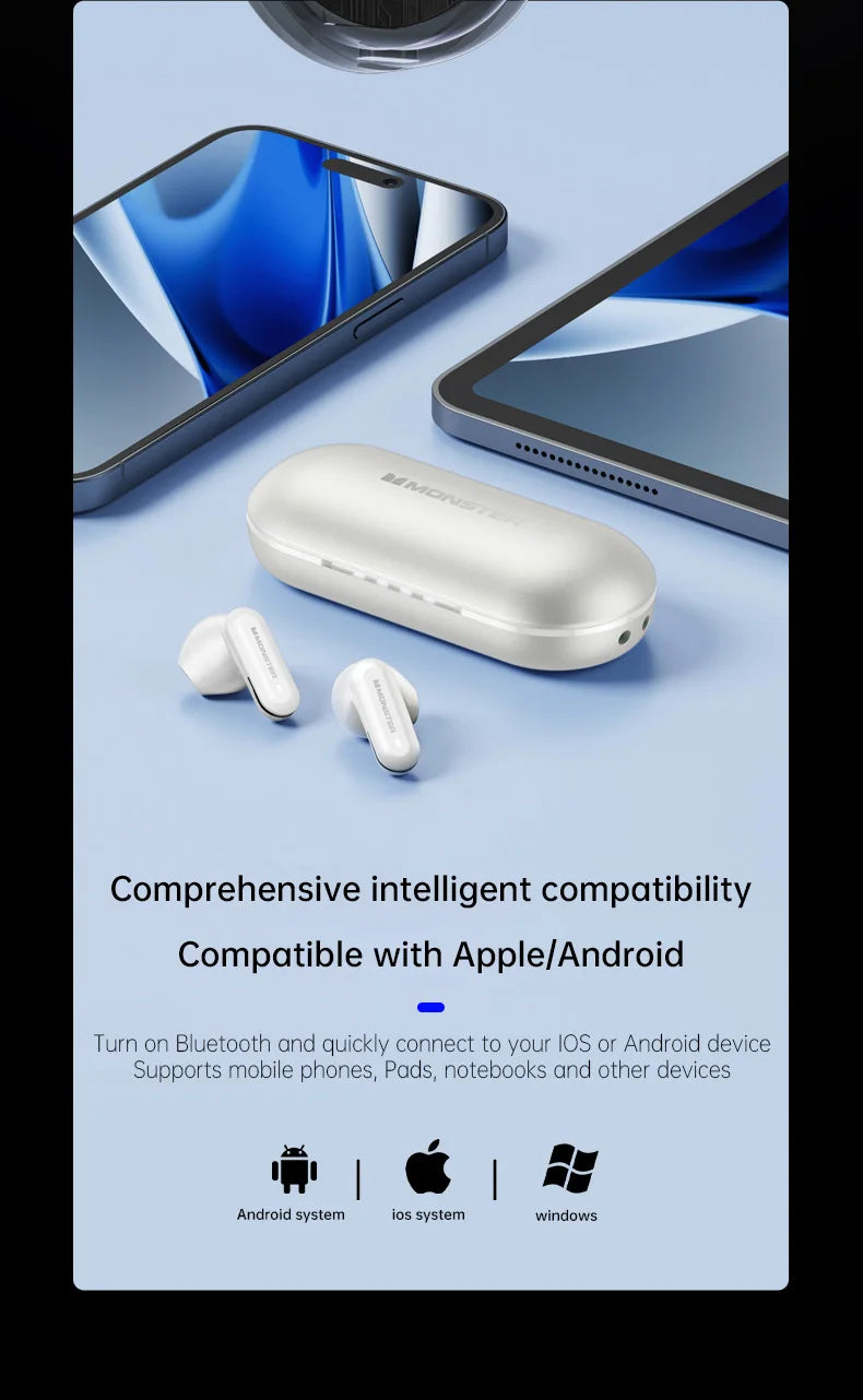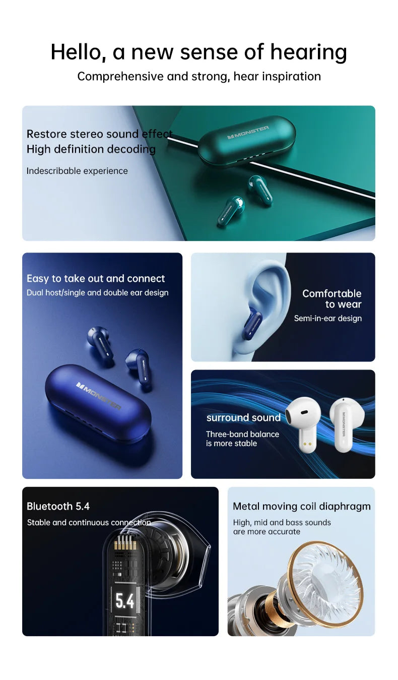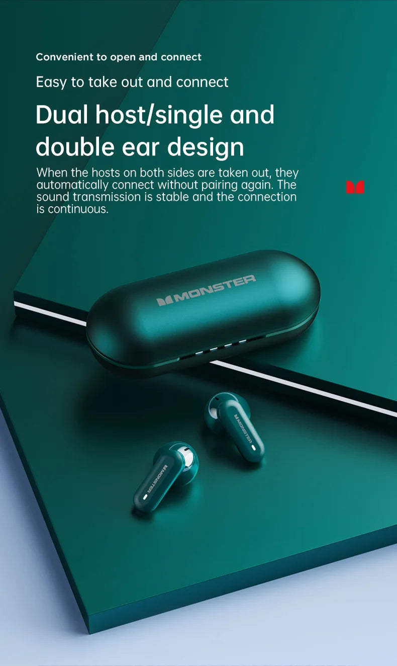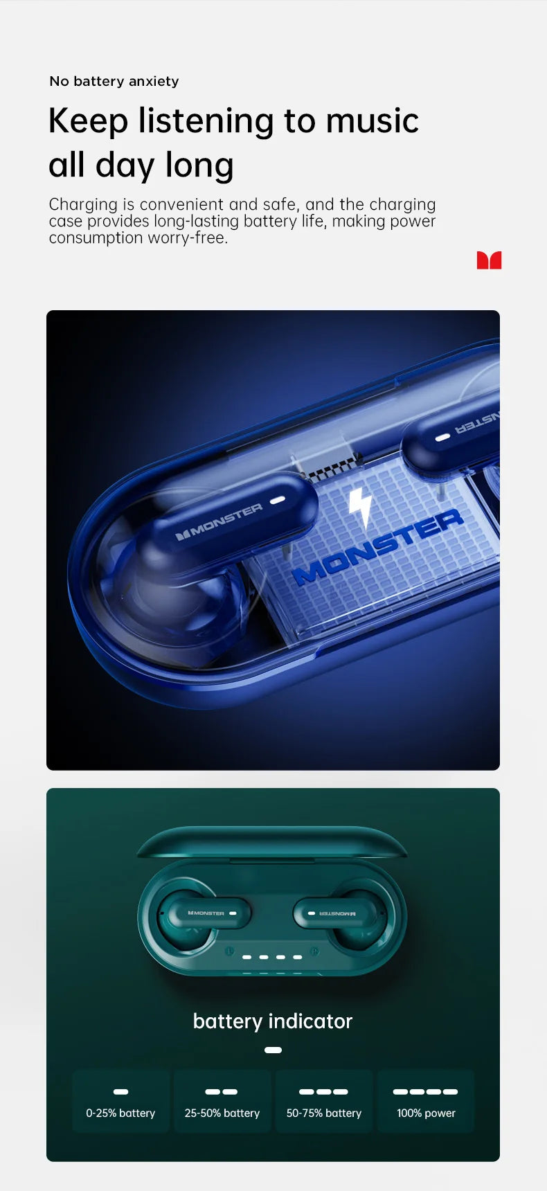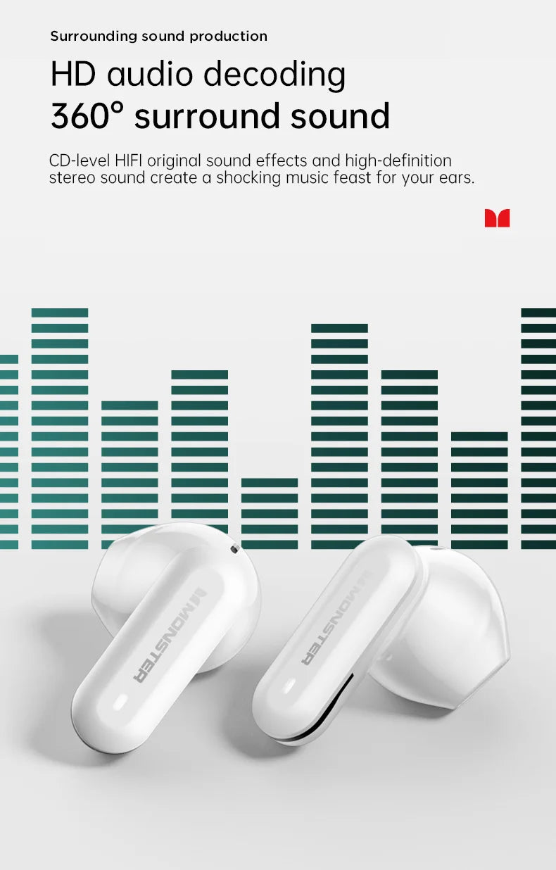 Monster Xkt25 Wireless Bluetooth Earphones TWS Hifi Stereo Headphones Gaming ...