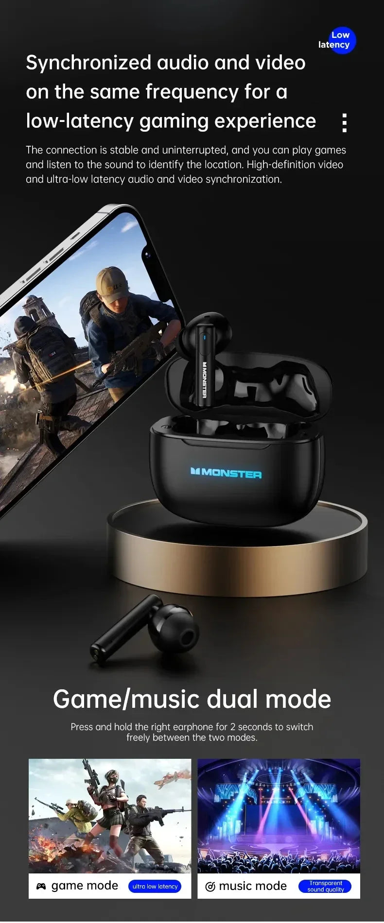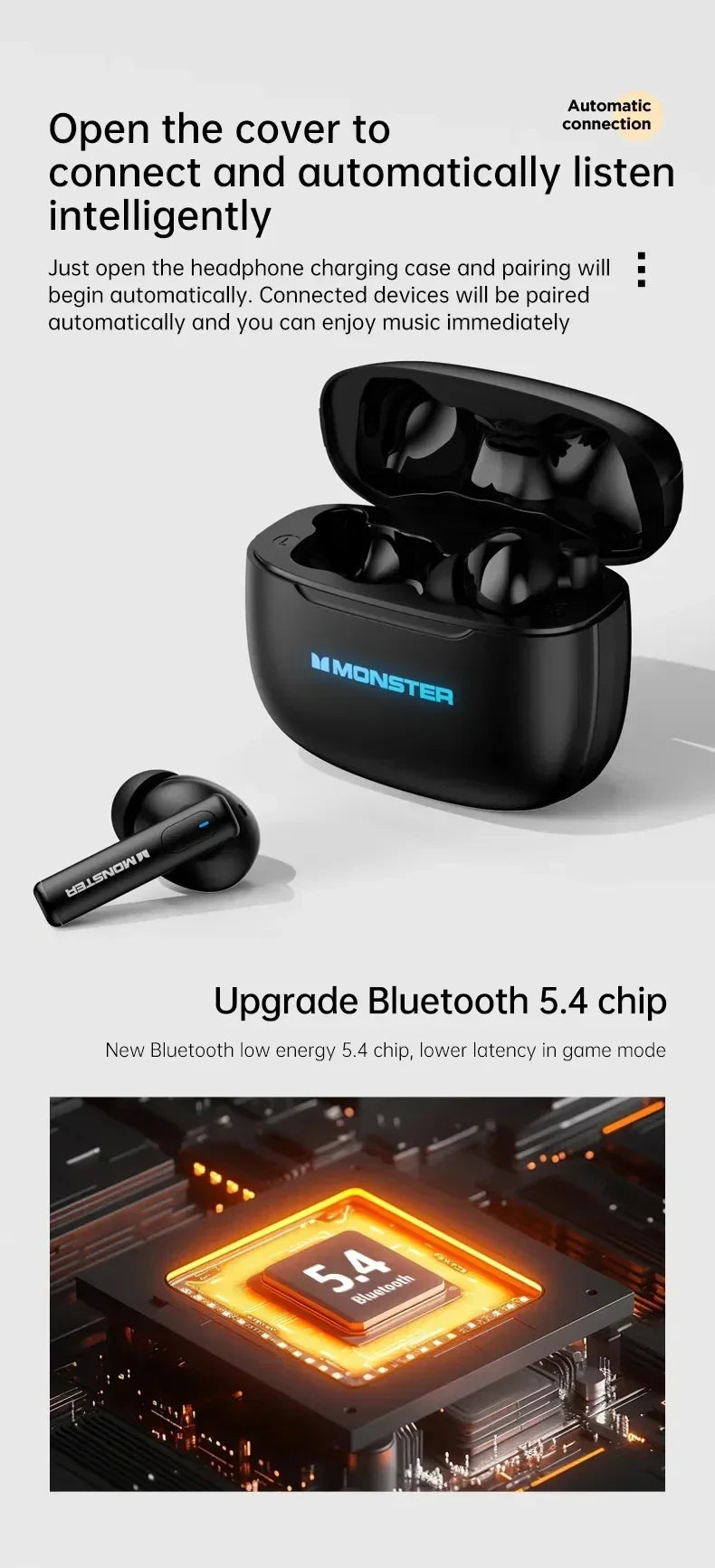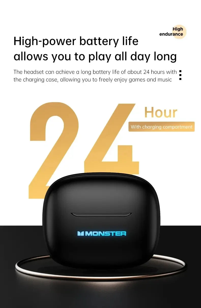 Monster Xkt26 Wireless Bluetooth 5.4 Earphones TWS Hifi Stereo Headphones Gam...