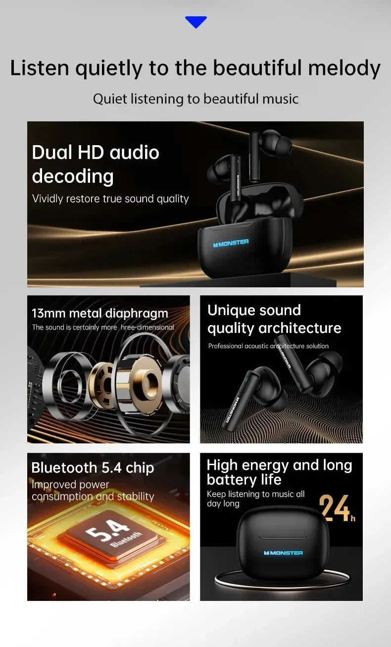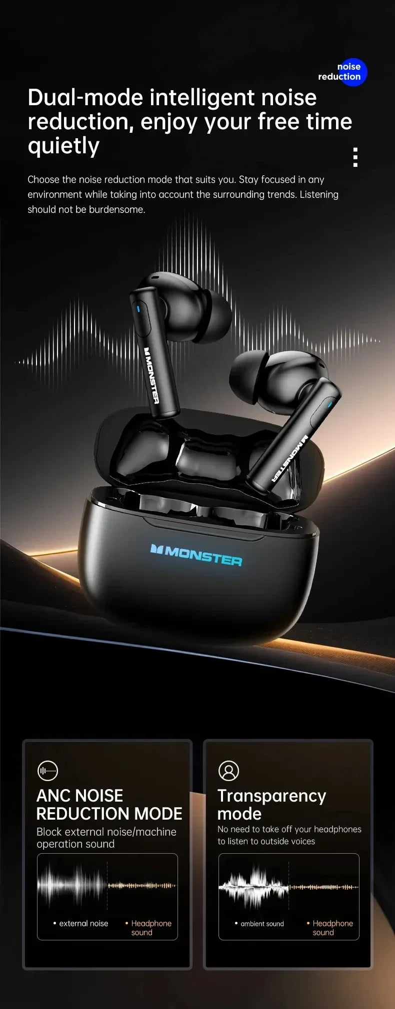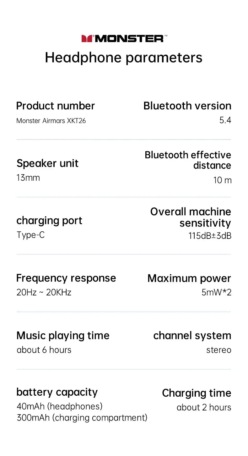 Monster Xkt26 Wireless Bluetooth 5.4 Earphones TWS Hifi Stereo Headphones Gam...