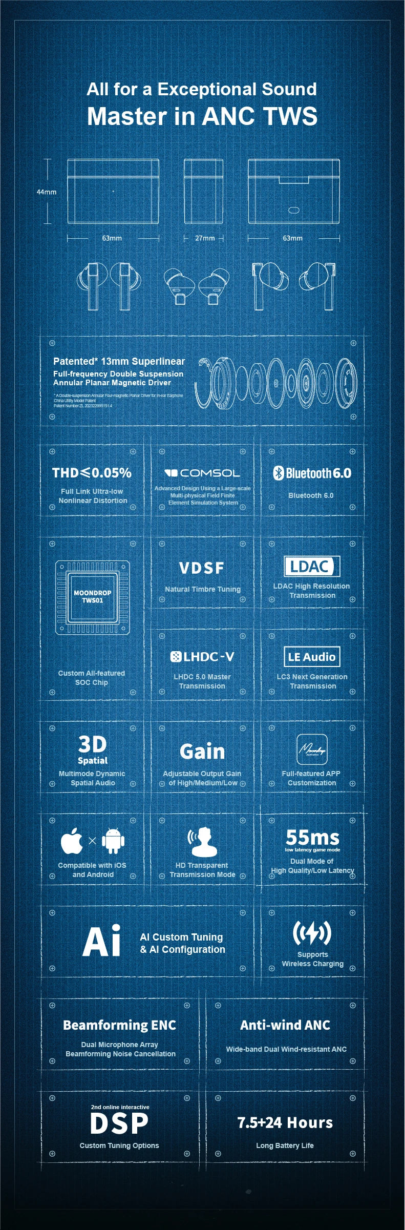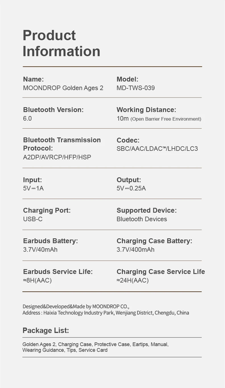 Moondrop Golden Ages 2 TWS HiFi Wireless In ear Earphone Al Custom Tuning& Al...