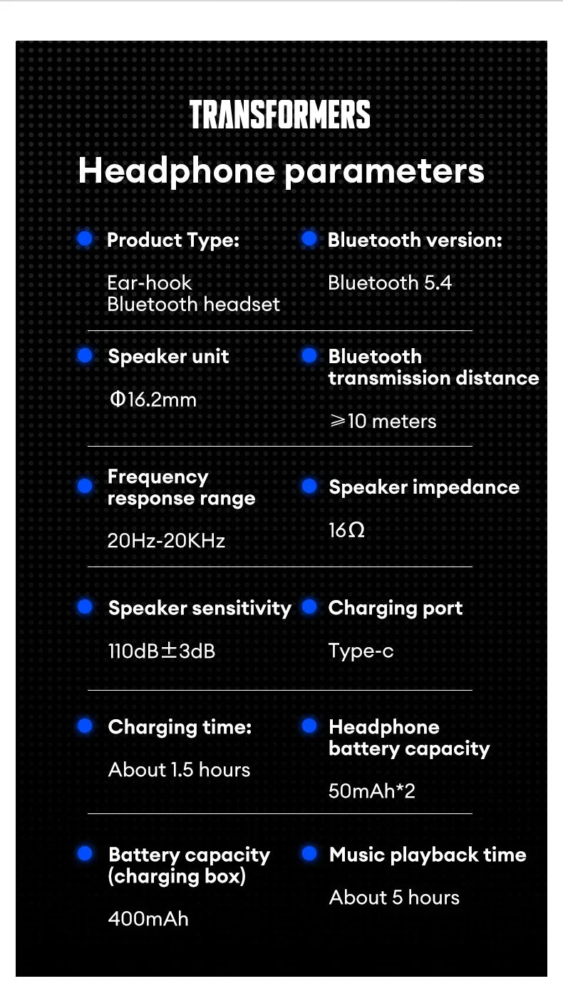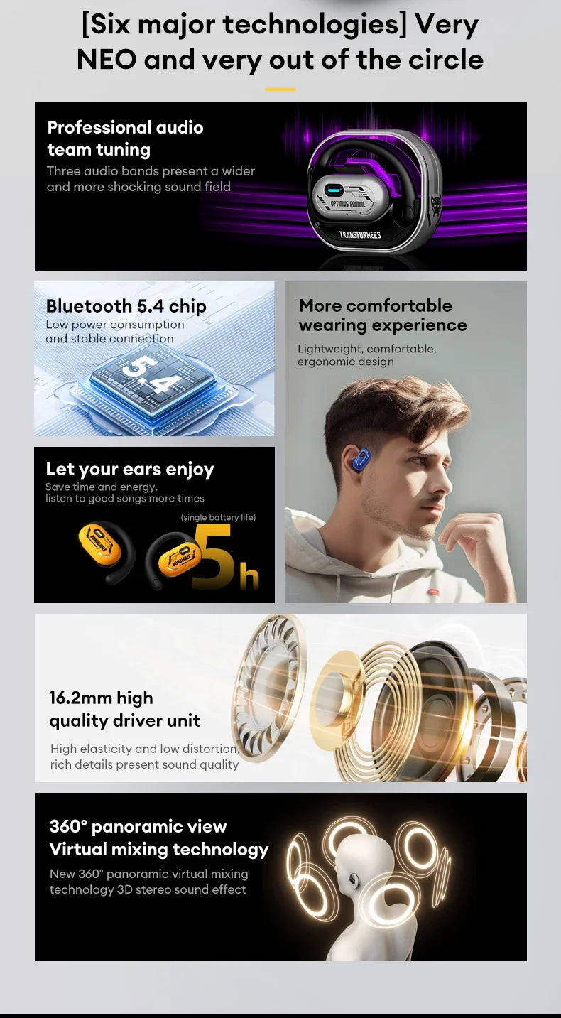 Transformers TF T15 Wireless Earphones Bluetooth 5.4 HiFi Sound Music Ear hoo...